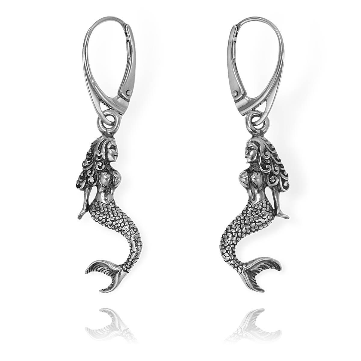 Piękne Srebrne Oksydowane Kolczyki Syrenki !