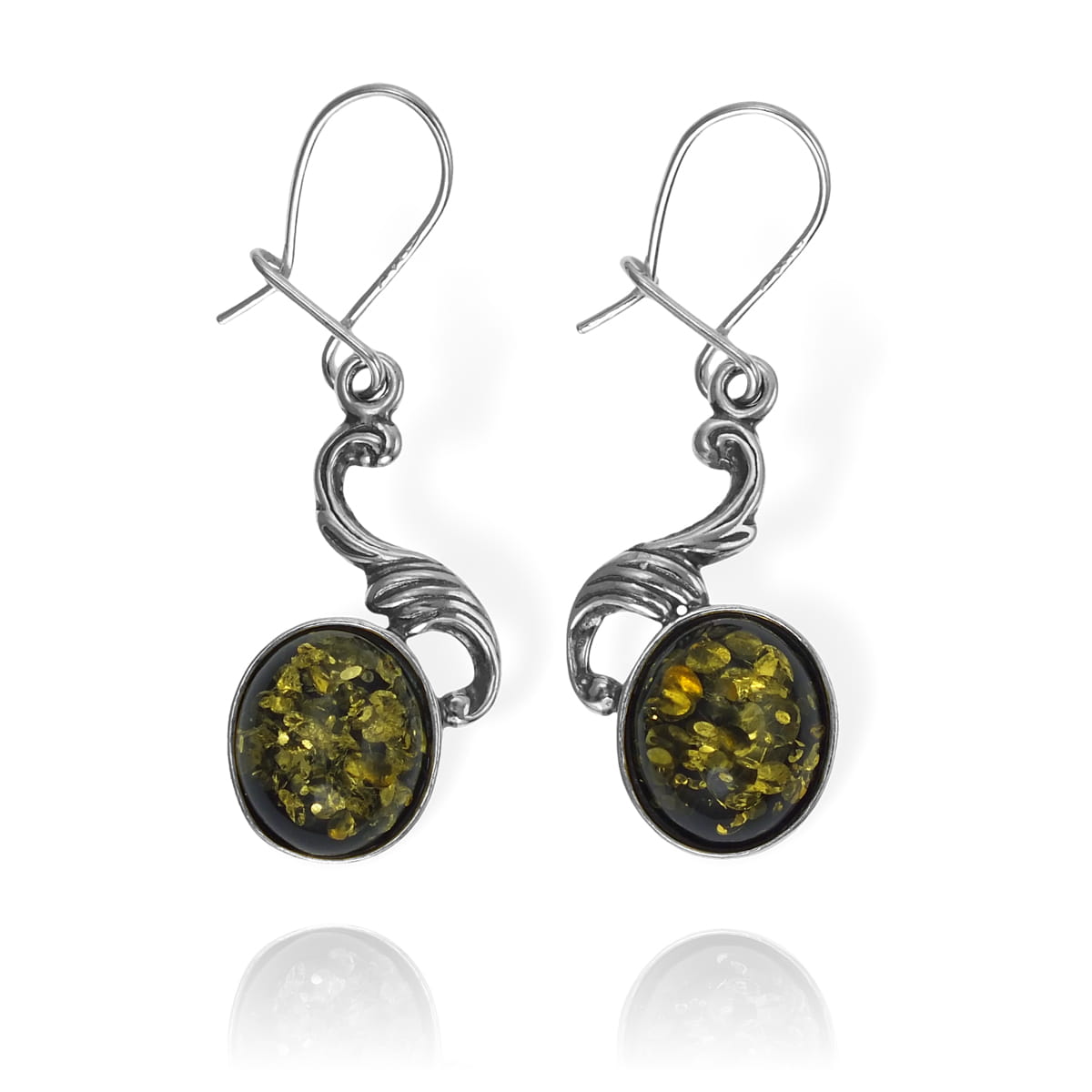 Piękne Srebrne Oksydowane Kolczyki z Bursztynem