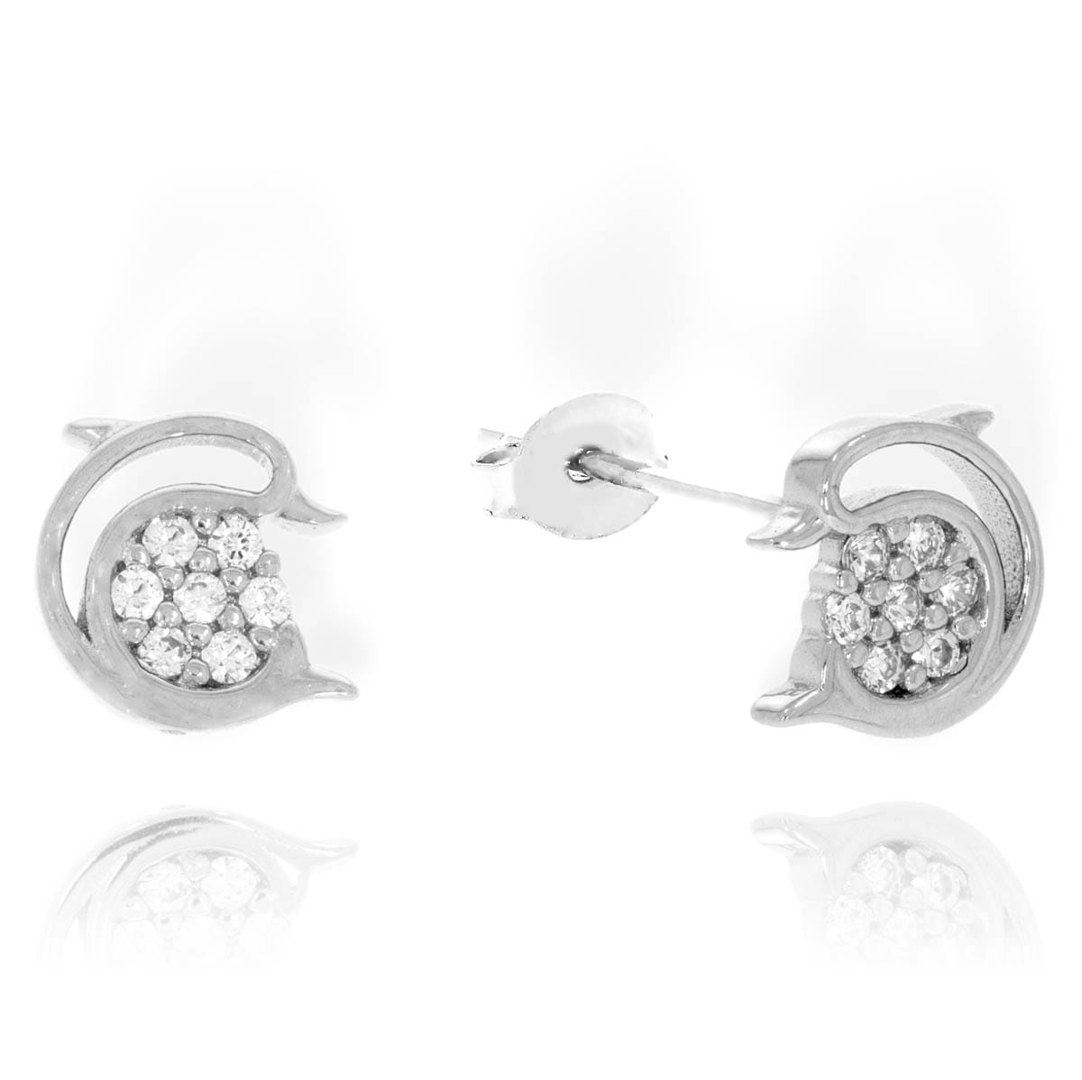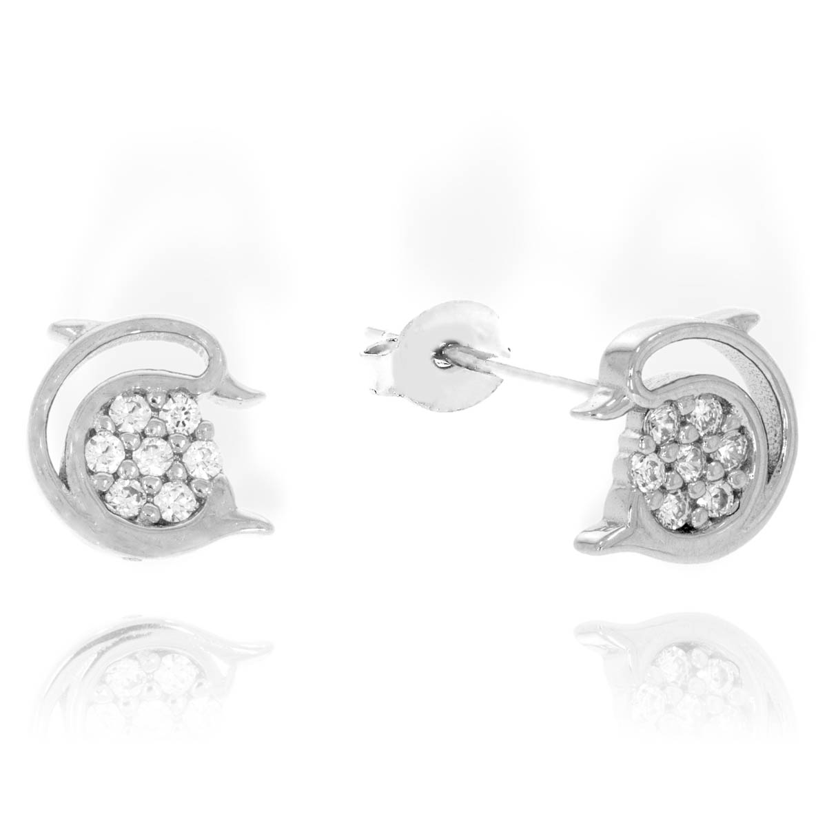 Piękne Srebrne Rodowane Kolczyki Delfiny z Cyrkoniami