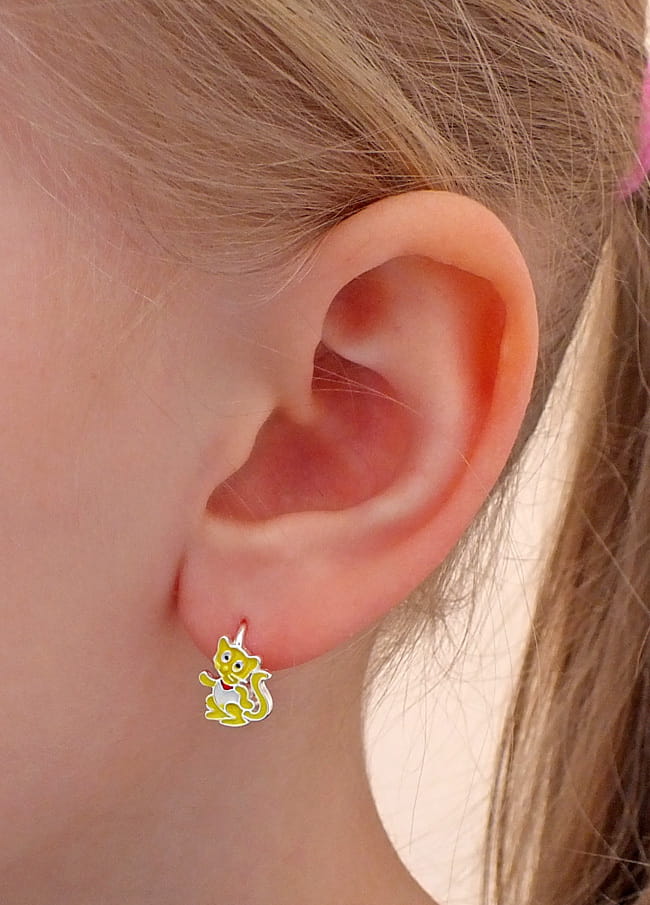 Piękne Srebrne Rodowane Kolczyki Kotki dla Twojej Księżniczki !