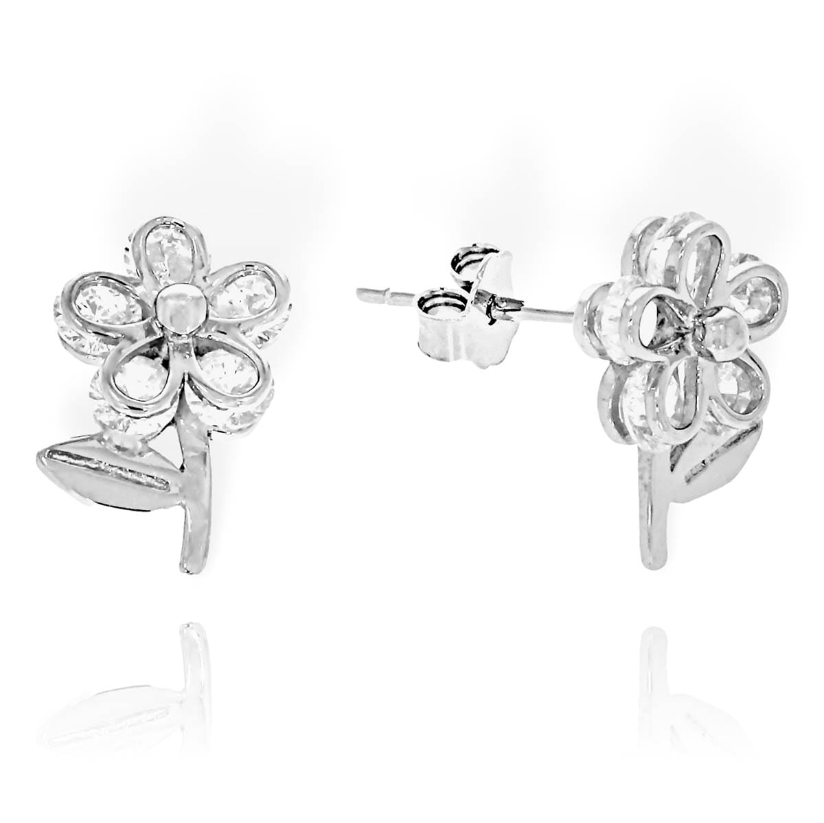 Piękne Srebrne Rodowane Kolczyki Kwiatuszki z Cyrkoniami!