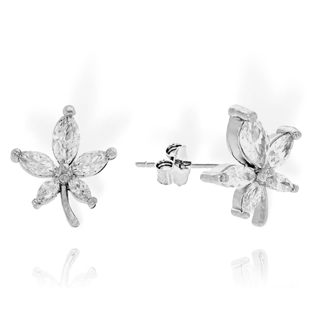 Piękne Srebrne Rodowane Kolczyki Liście, Listki z Cyrkoniami