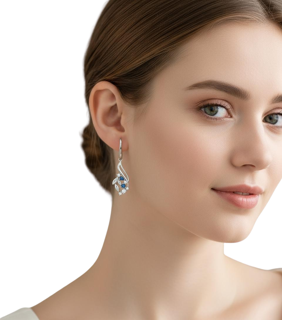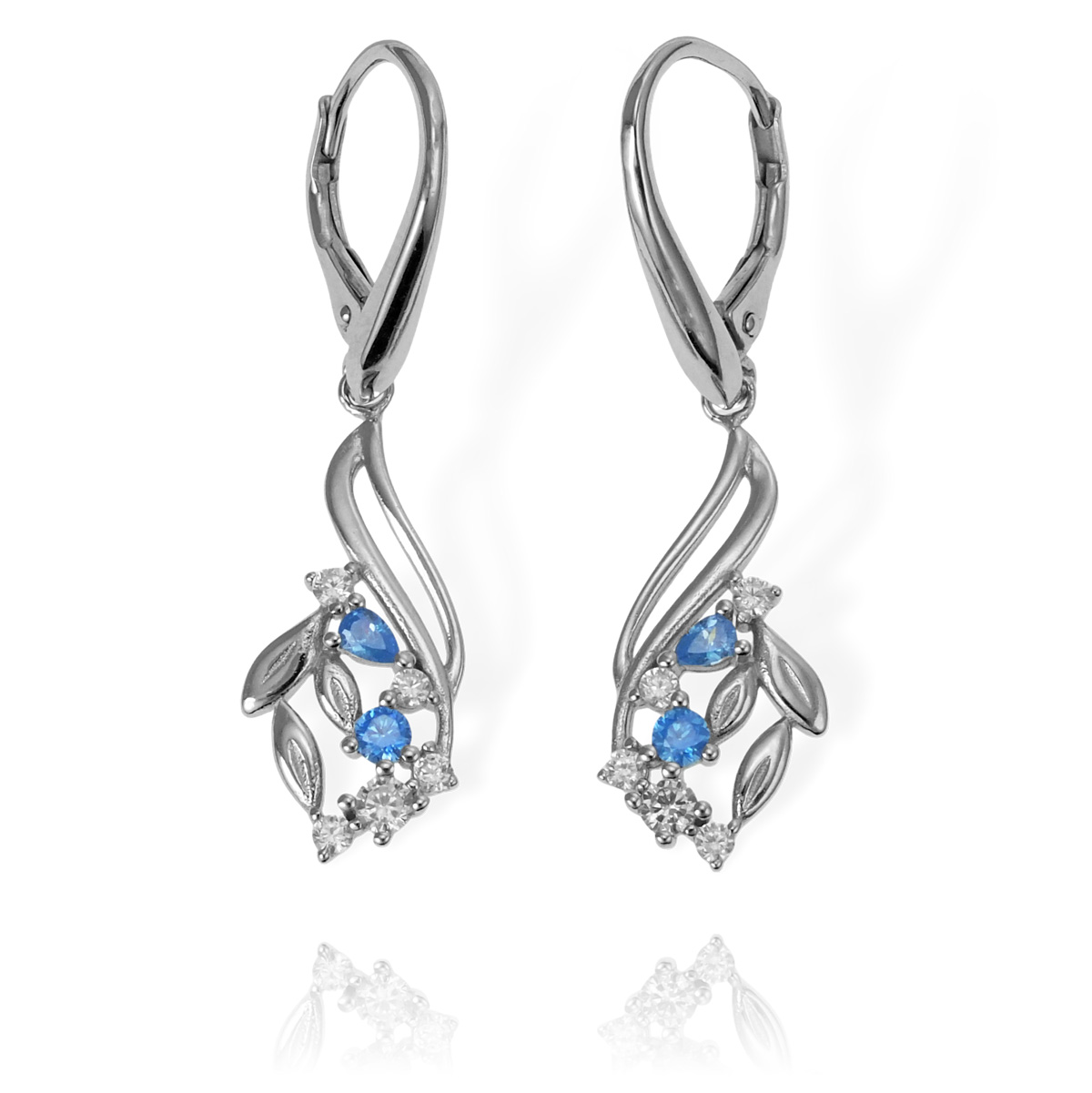 Piękne Srebrne Rodowane Kolczyki Listki Kwiatki z Cyrkoniami !