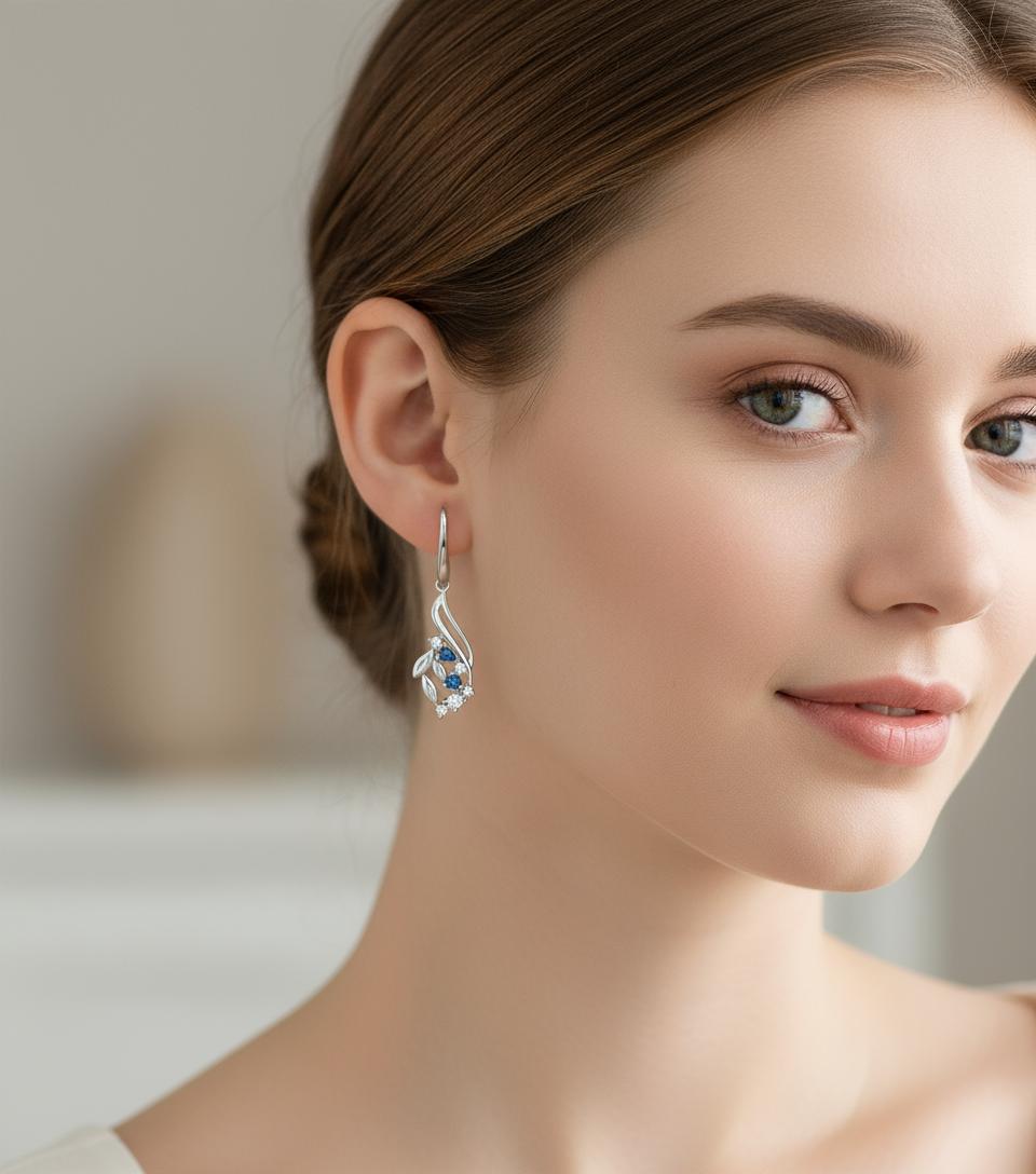 Piękne Srebrne Rodowane Kolczyki Listki Kwiatki z Cyrkoniami