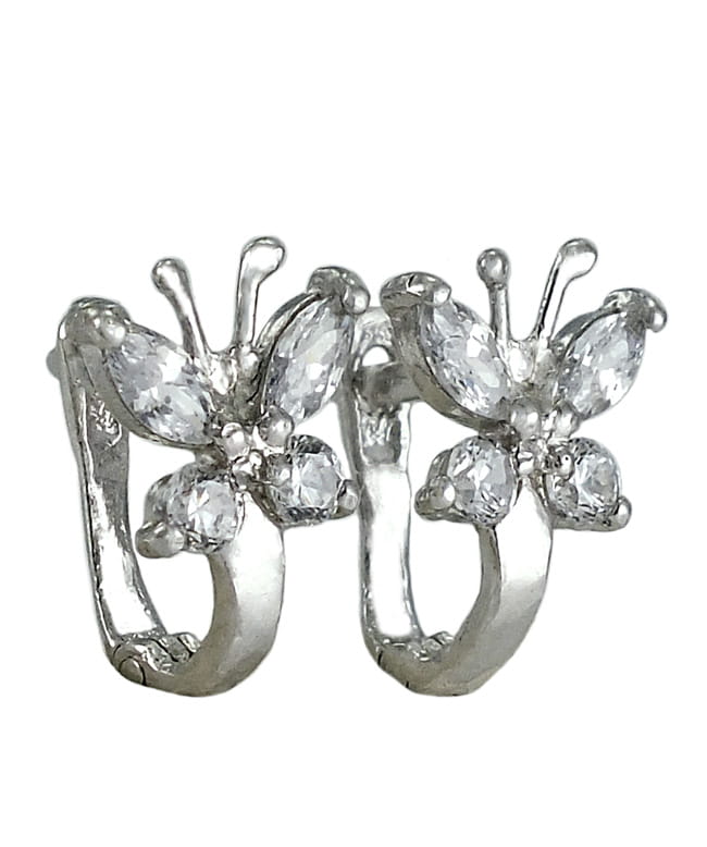 Piękne Srebrne Rodowane Kolczyki Motylki z Cyrkoniami Na Angliku !