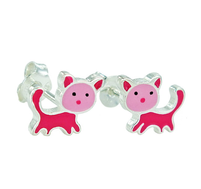 Piękne Srebrne Rodowane Kolczyki Różowe Kotki !!!