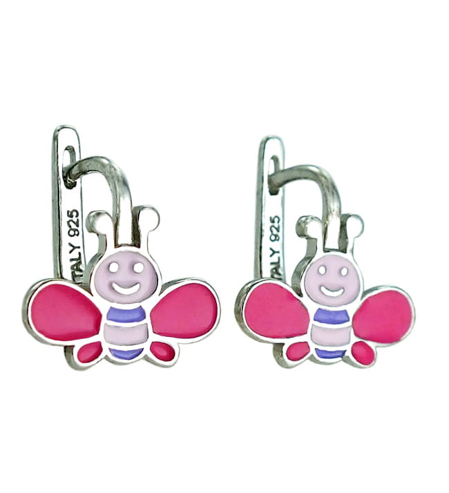 Piękne Srebrne Rodowane Kolczyki Różowe Pszczółki !!!