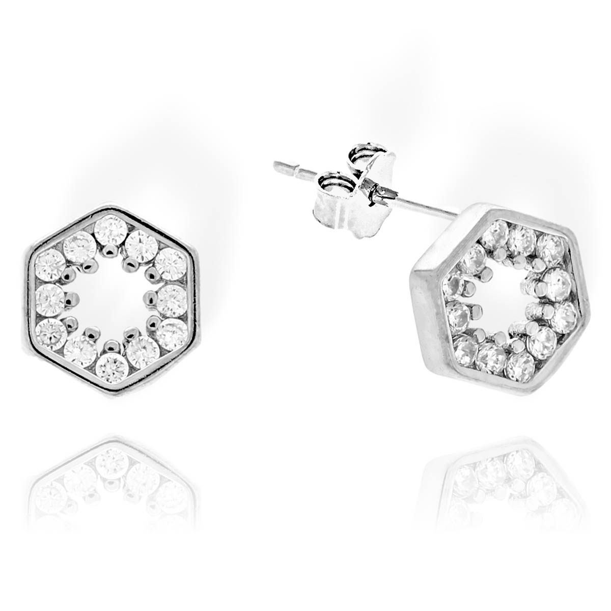Piękne Srebrne Rodowane Kolczyki Sześciokąty z Cyrkoniami