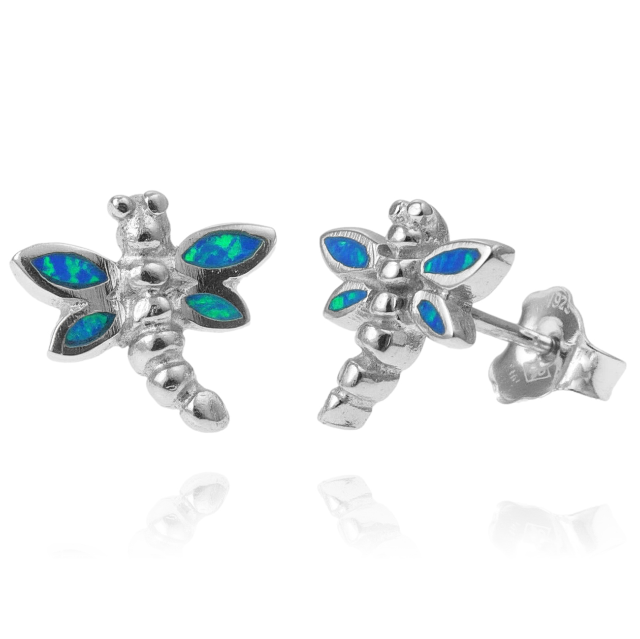 Piękne Srebrne Rodowane Kolczyki Ważki, Ważka z Opalem
