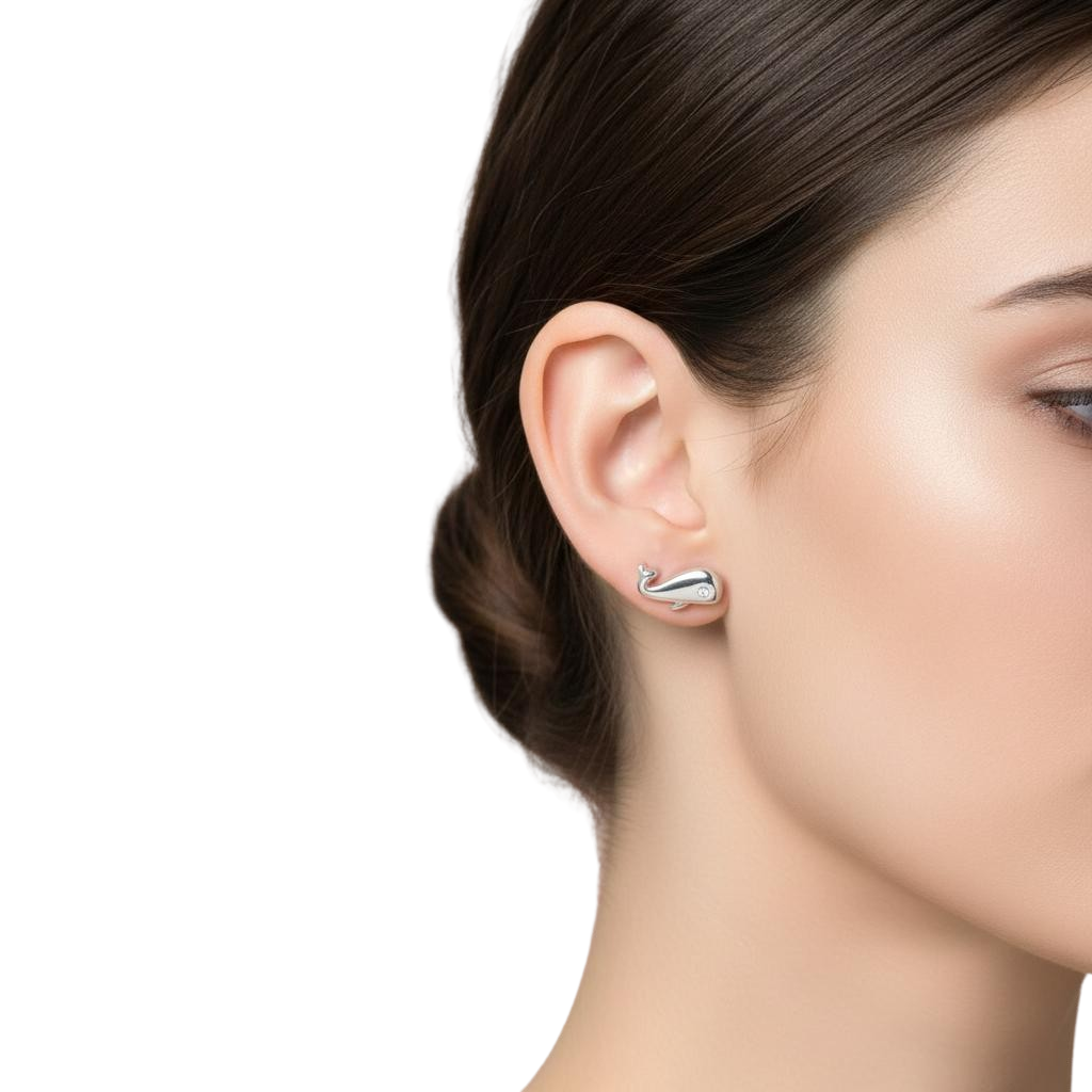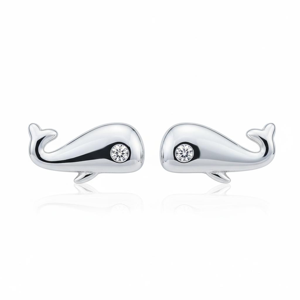 Piękne Srebrne Rodowane Kolczyki Wieloryby z Cyrkonią !