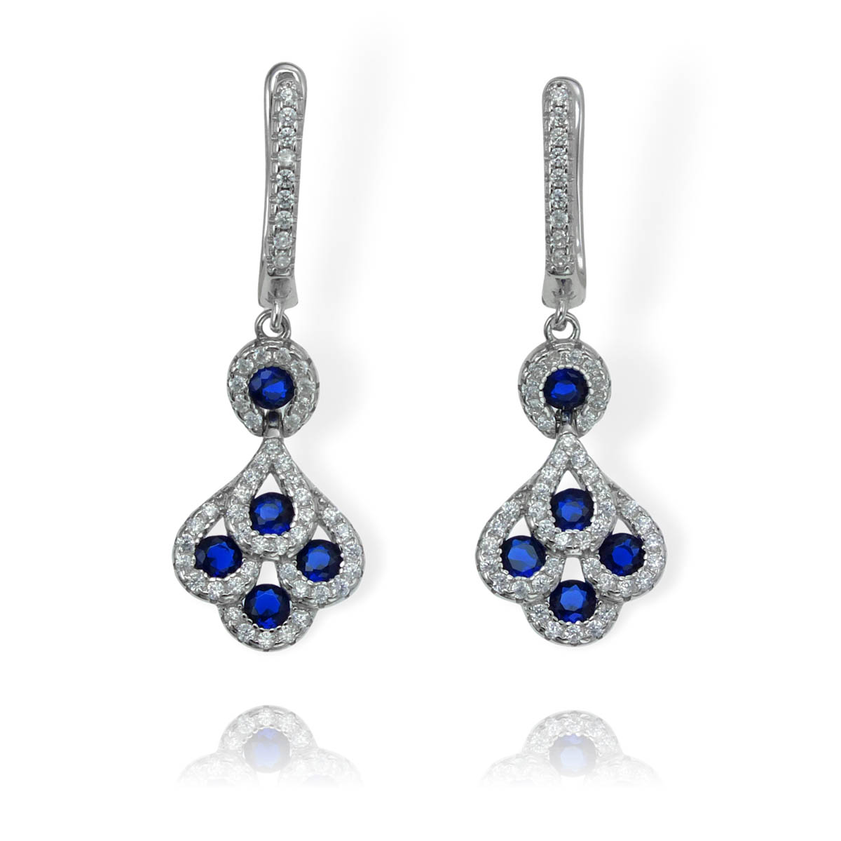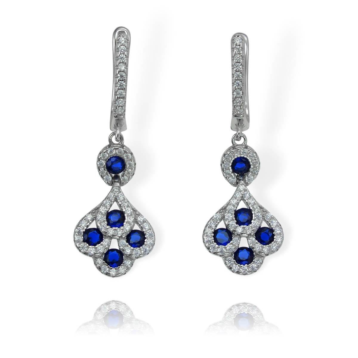 Piękne Srebrne Rodowane Kolczyki z Niebieskimi Cyrkoniami !