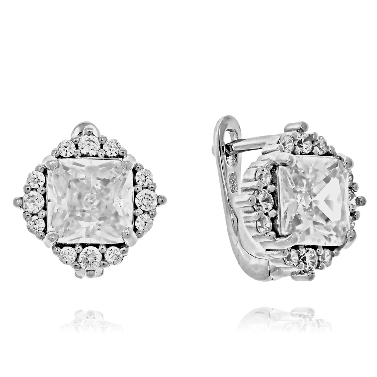 Piękne Srebrne Rodowane Kolczyki z Dużą Cyrkonią