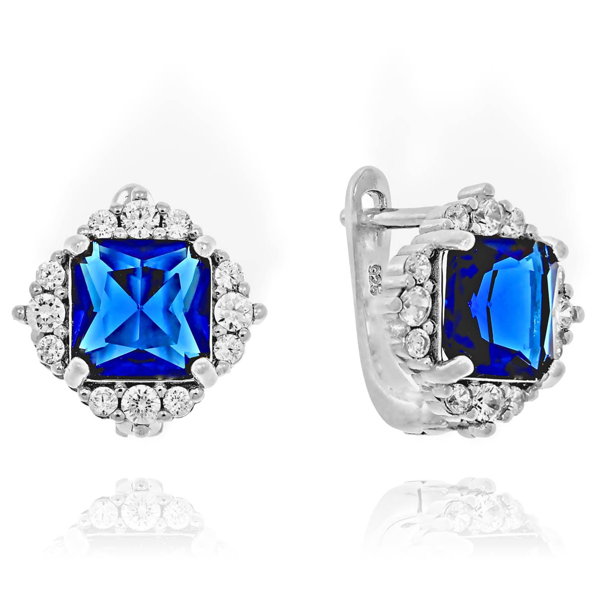 Piękne Srebrne Rodowane Kolczyki z Dużą Niebieską Cyrkonią
