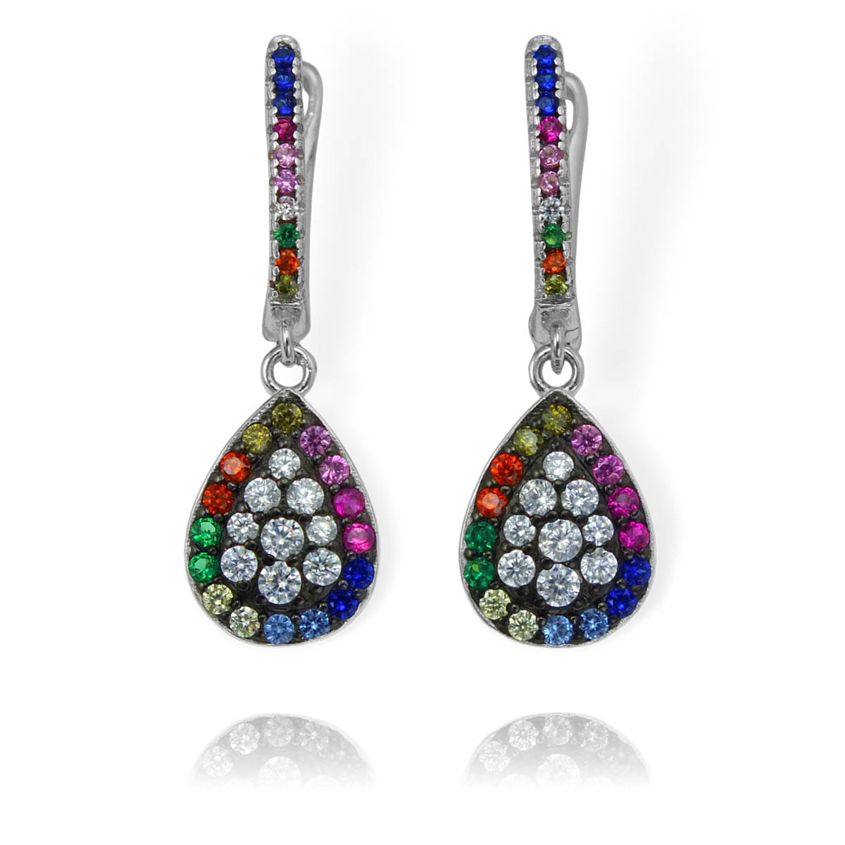 Piękne Srebrne Rodowane Kolczyki z Kolorowymi Cyrkoniami !