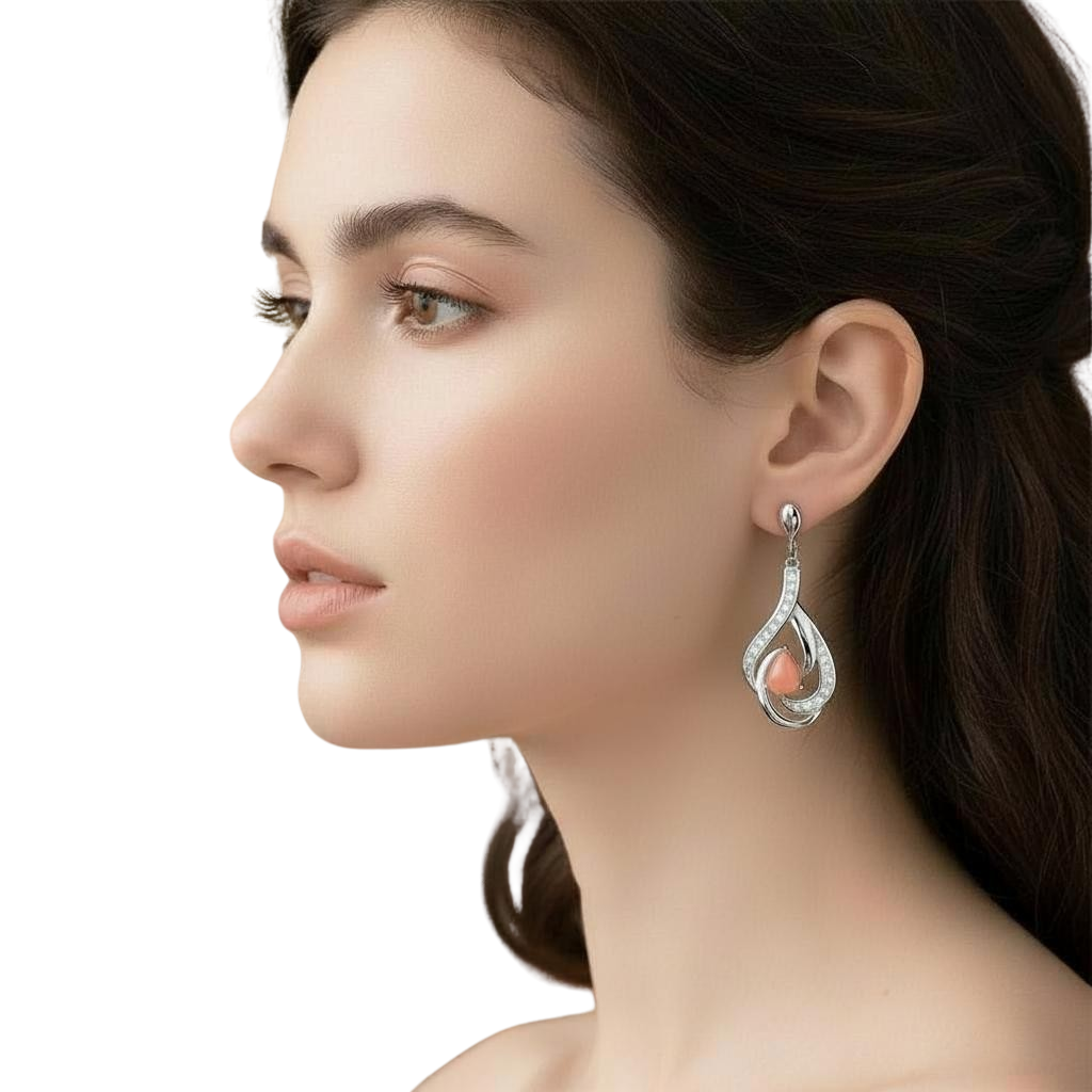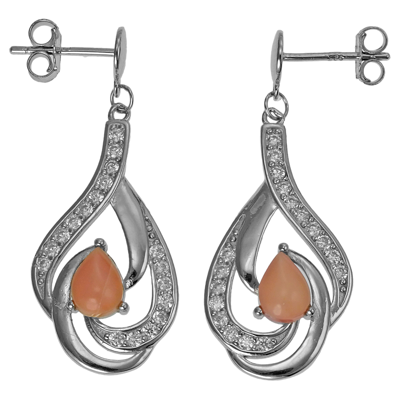 Piękne Srebrne Rodowane Kolczyki z Queen Conch i Cyrkoniami !
