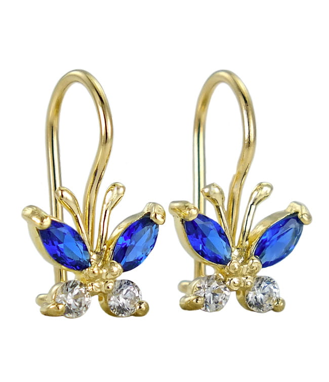Piękne Złote Kolczyki Cudne Motylki z Cyrkoniami na Bigielku - pr. 585