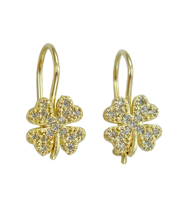 Piękne Złote Kolczyki Koniczynki z Cyrkoniami na Bigielku - Próba 585 !!!