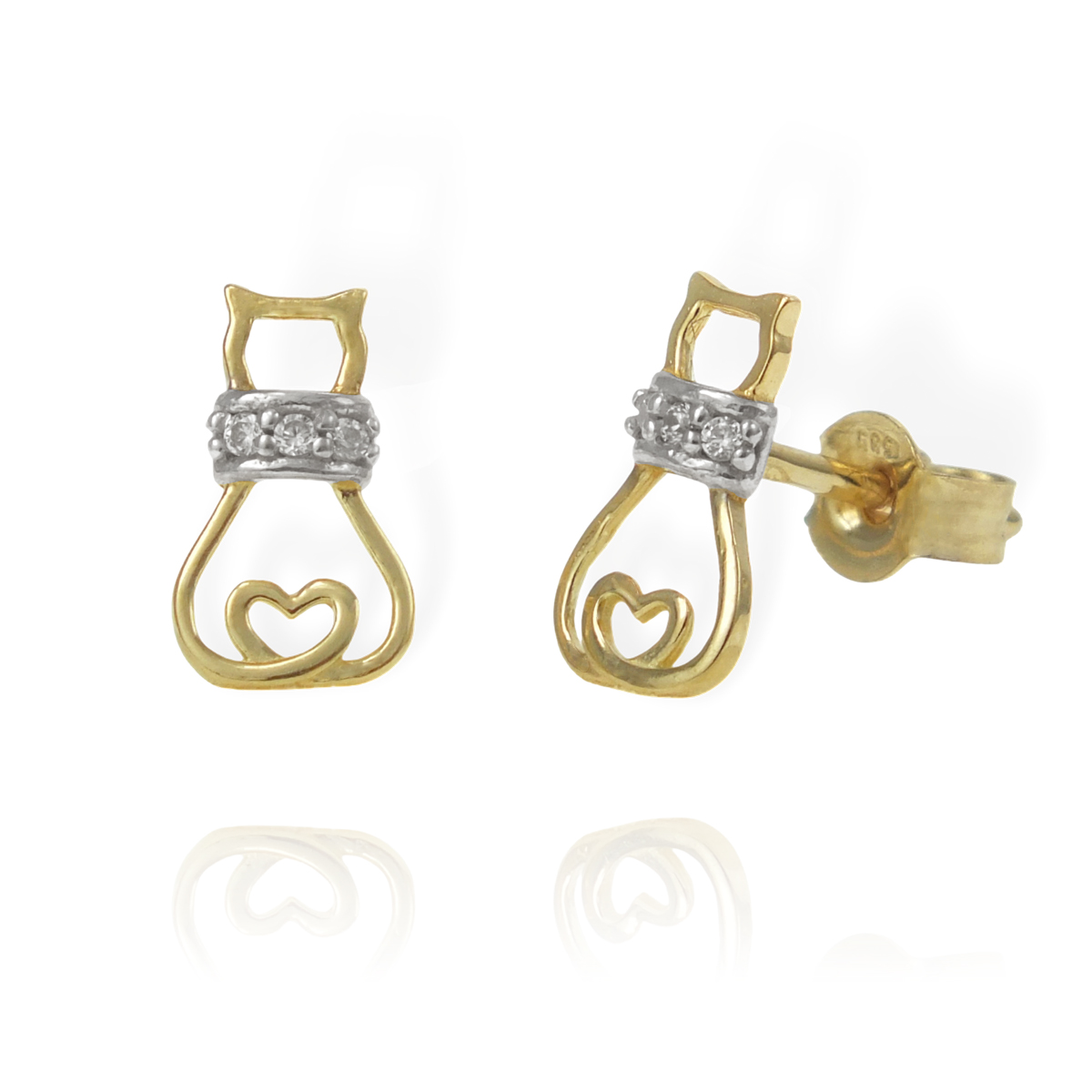Piękne Złote Kolczyki Koty Kotki z Cyrkoniami - pr. 585
