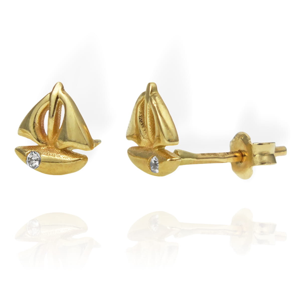 Piękne Złote Kolczyki Łódki z Cyrkoniami - pr. 585