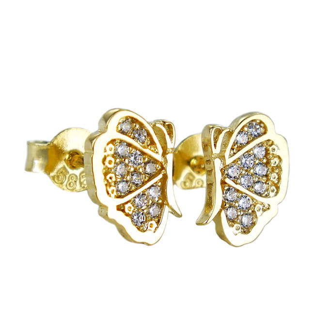 Piękne Złote Kolczyki Motyle z Cyrkoniami pr. 585 !