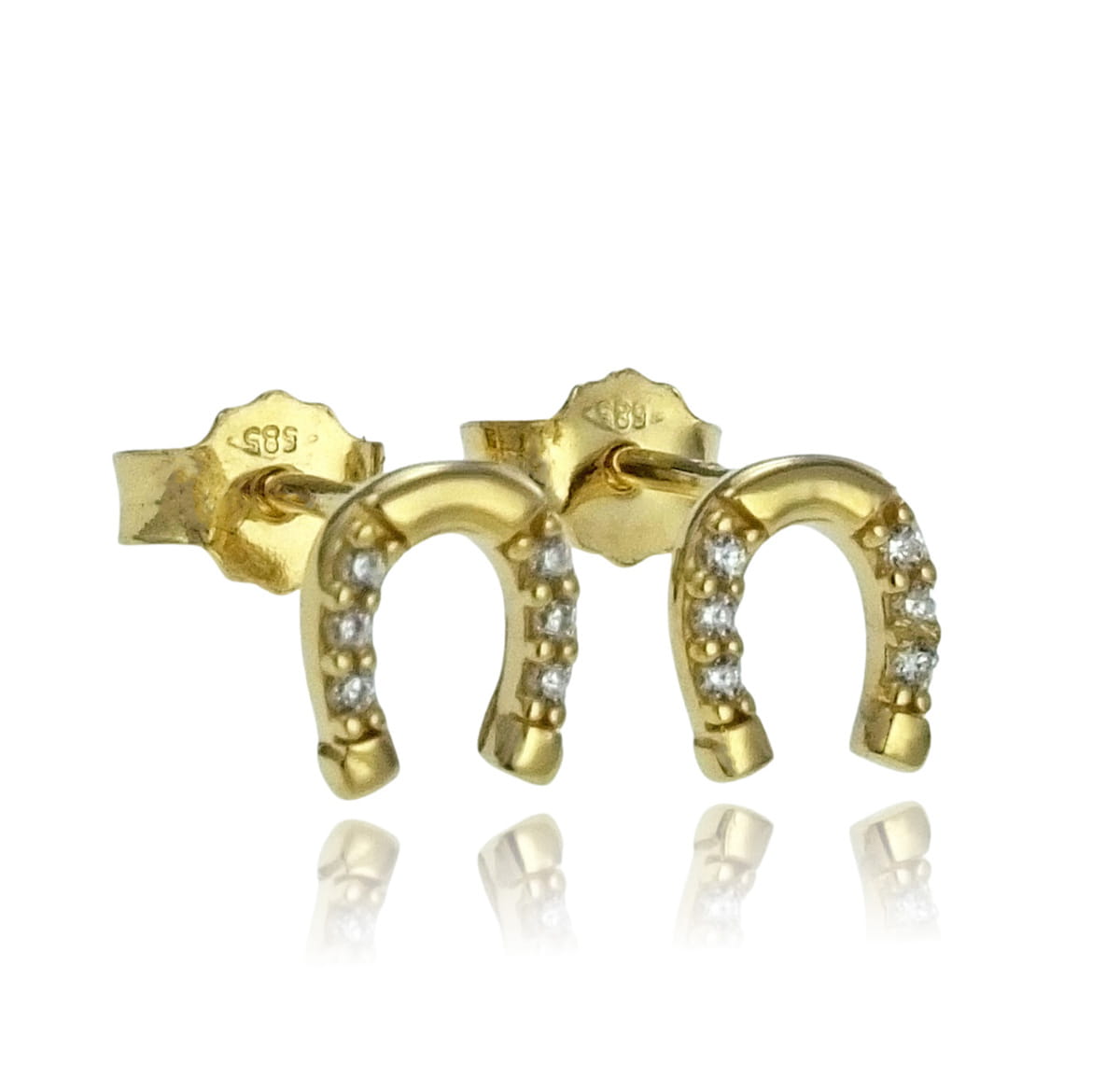 Piękne Złote Kolczyki Podkowy z Cyrkoniami na Szczęście - pr. 585