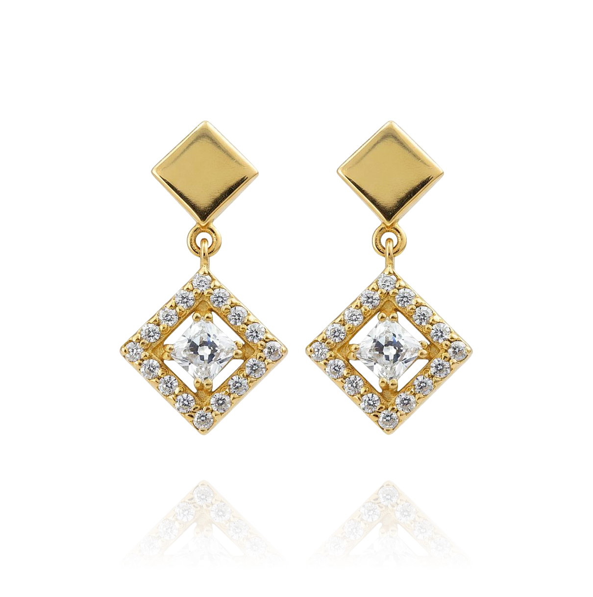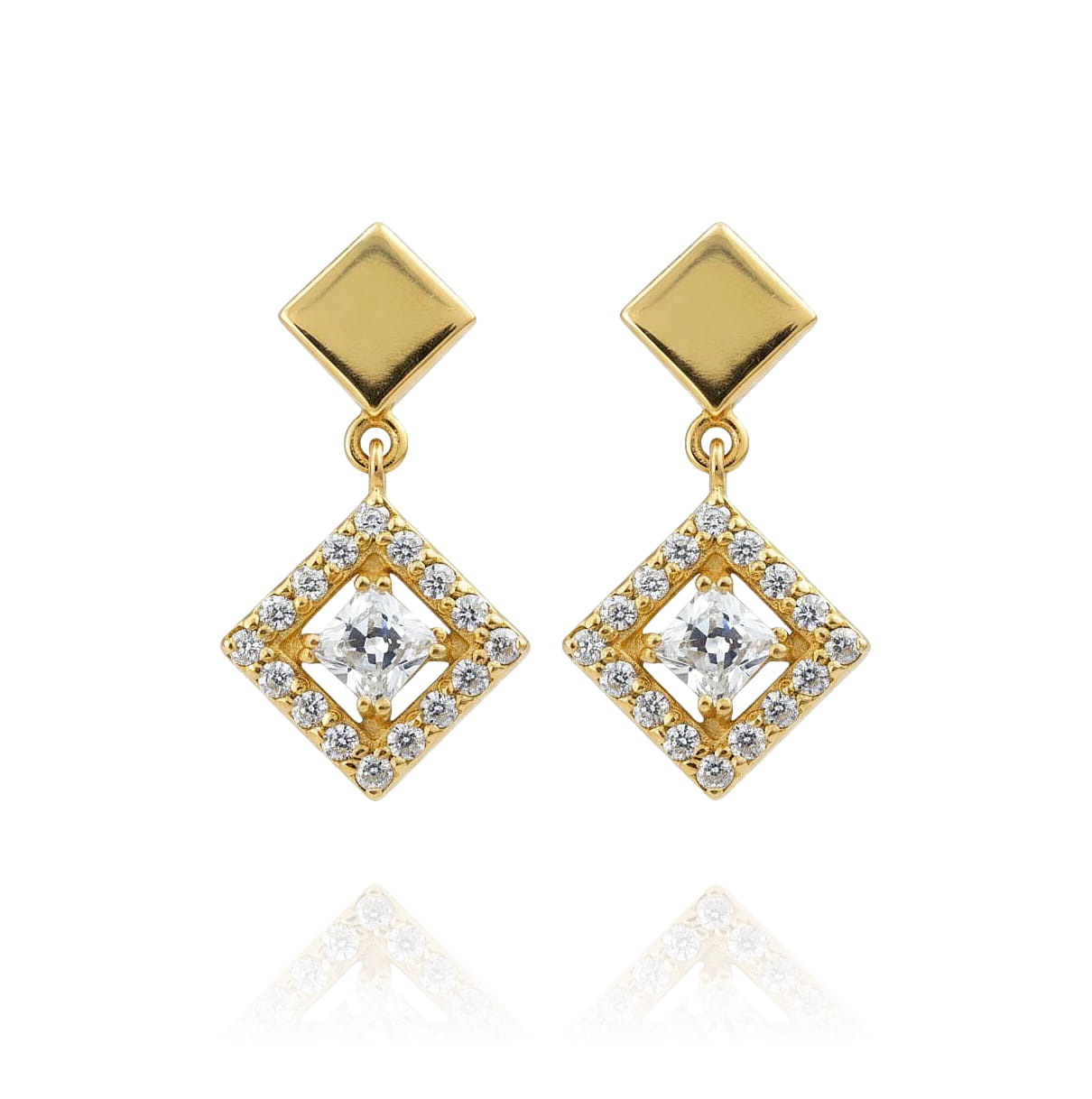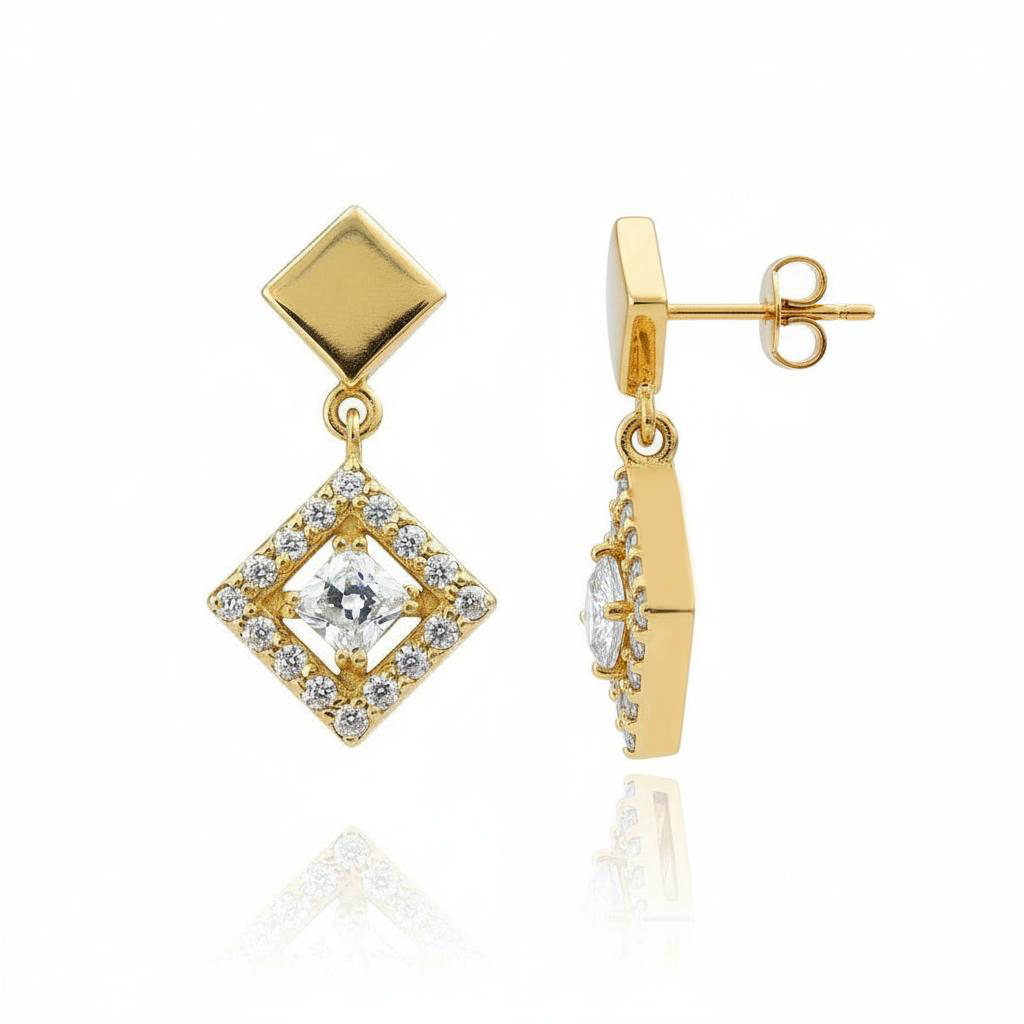 Piękne Złote Kolczyki Romby z Cyrkoniami !