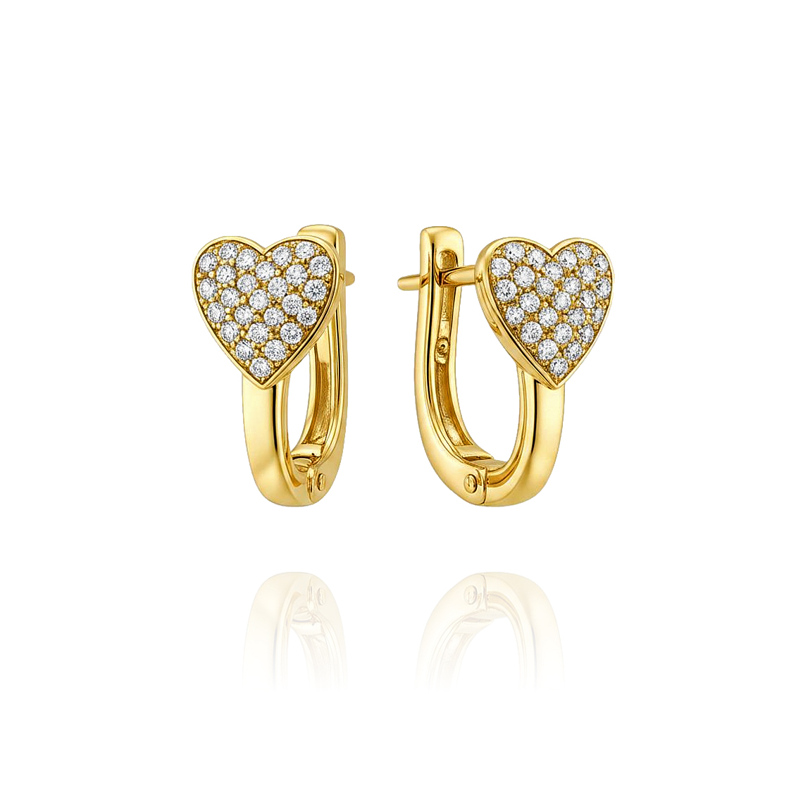 Piękne Złote Kolczyki Serca z Cyrkoniami !