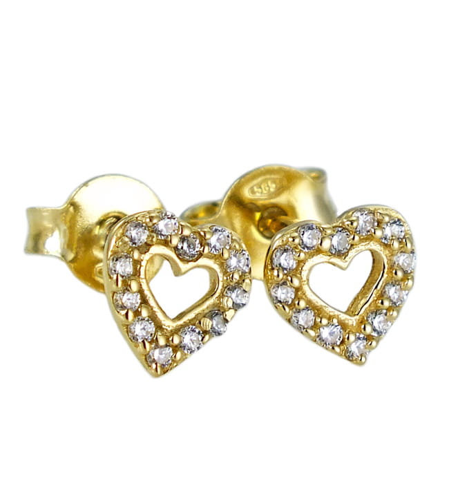 Piękne Złote Kolczyki Serca z Cyrkoniami - pr. 585