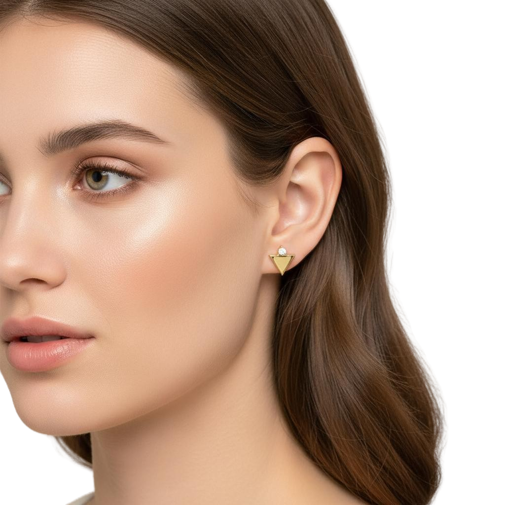 Piękne Złote Kolczyki Trókąty z Cyrkoniami - pr. 585