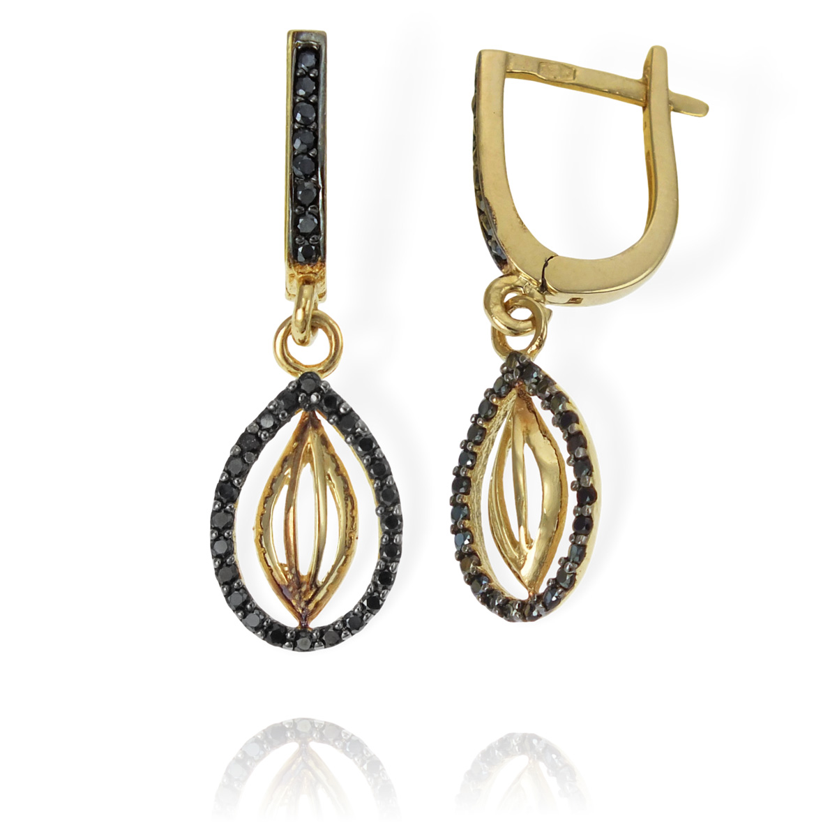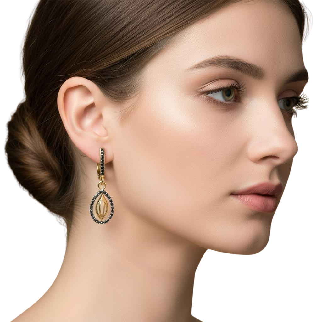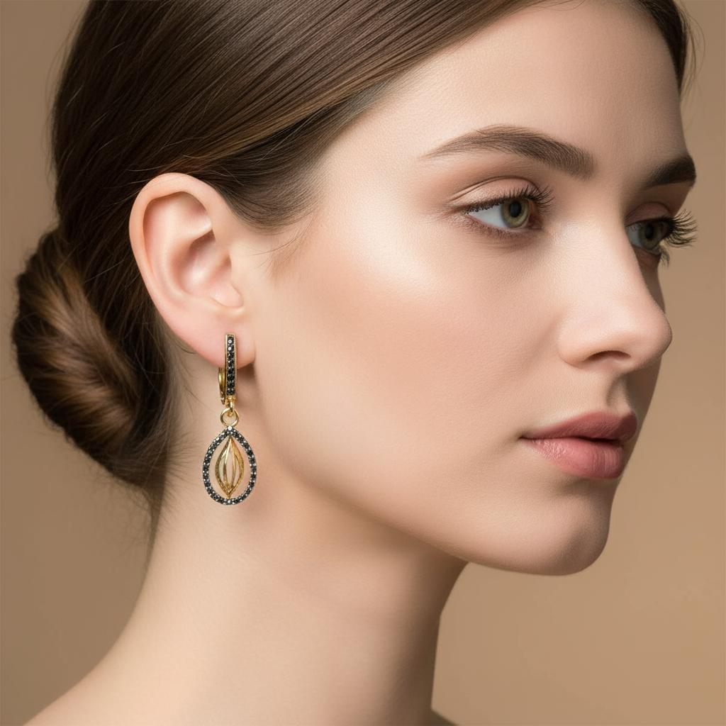 Piękne Złote Kolczyki z Czarnymi Cyrkoniami