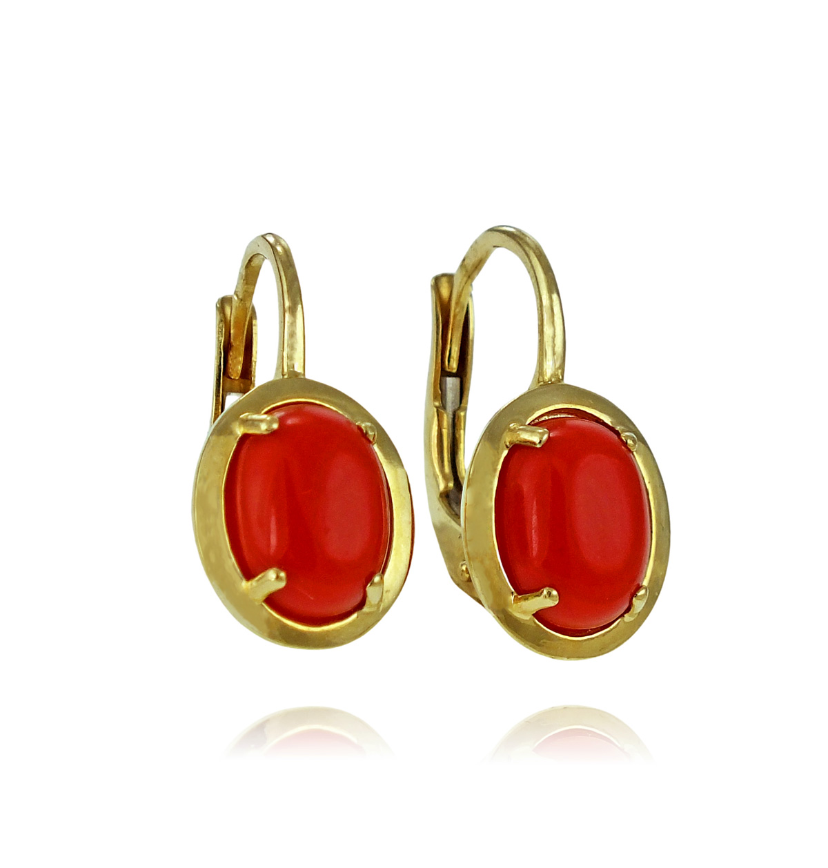 Piękne Złote Kolczyki z Koralem - próba 585 !