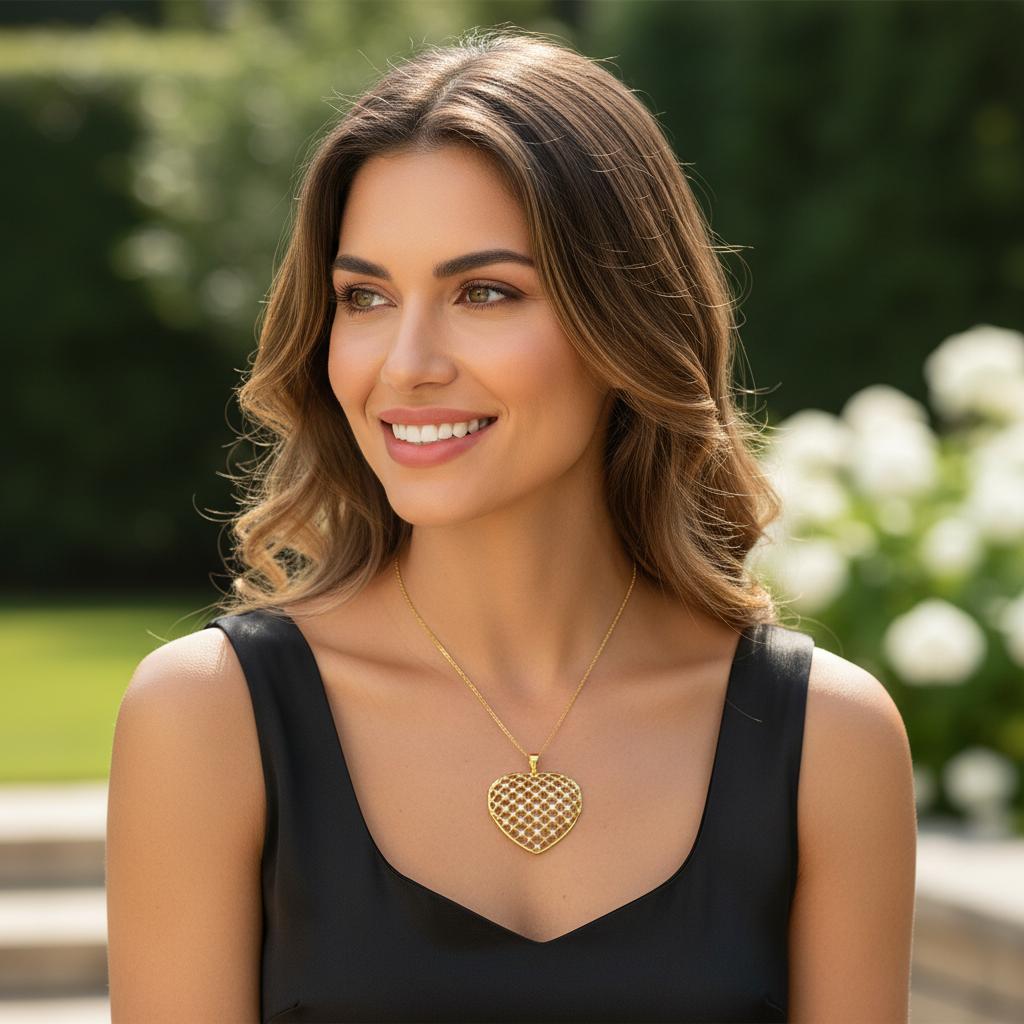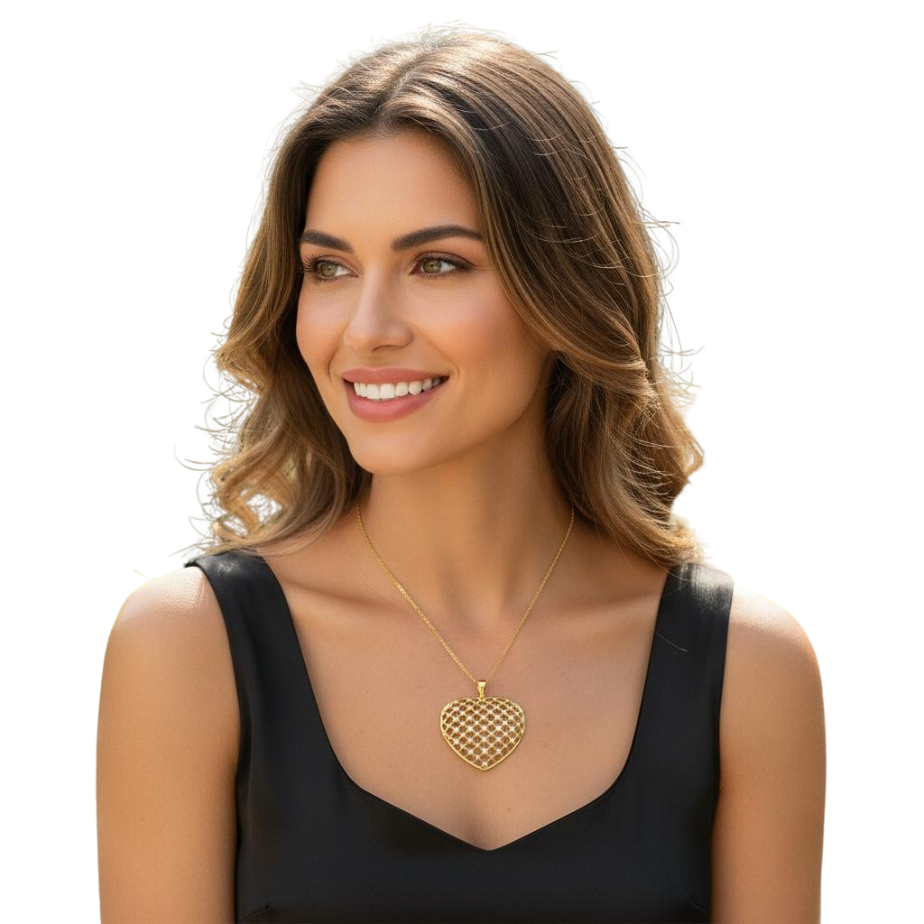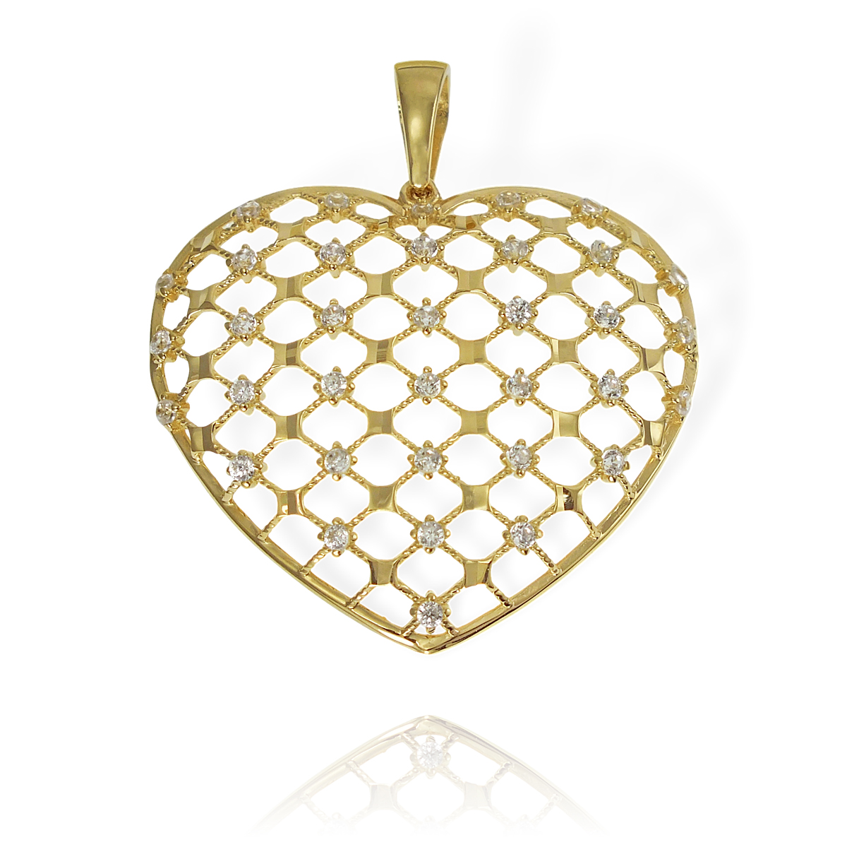 Piękny Ażurowy Złoty Wisior Wisiorek Serce z Cyrkoniami