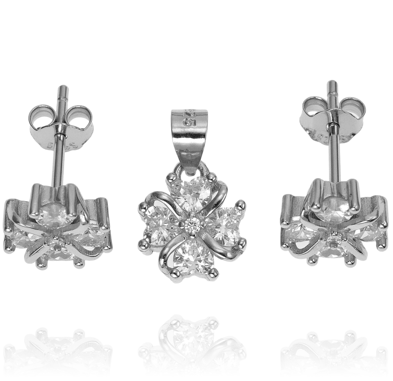 Piękny Srebrny Komplet Czterolistna Koniczyna z Cyrkoniami !