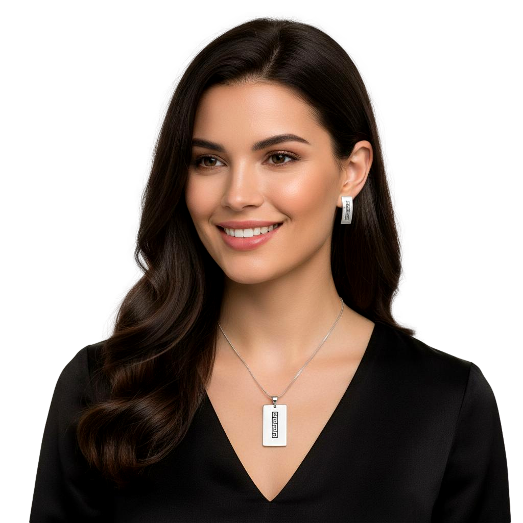 Piękny Srebrny Komplet Grecki Wzór