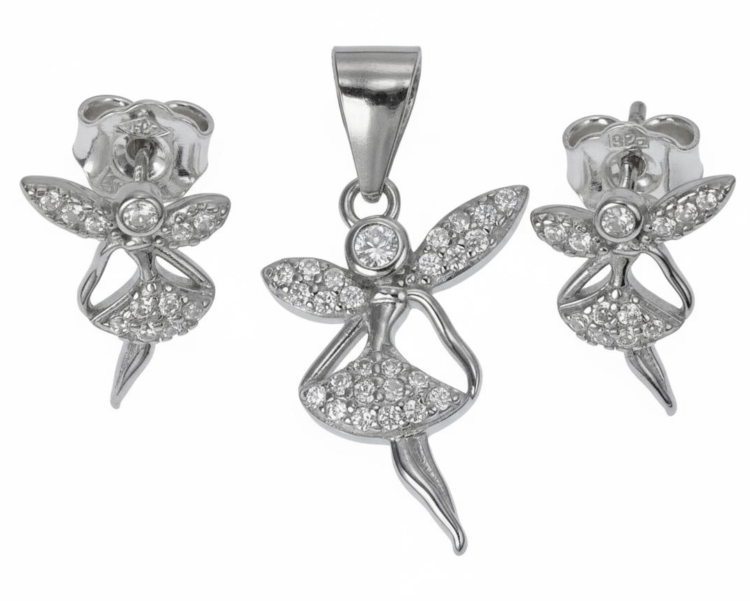 Piękny Srebrny Komplet Wróżka z Cyrkoniami !