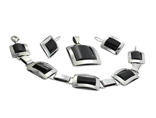Piękny Srebrny Komplet Z Onyksami - Ręczna Robota !!!
