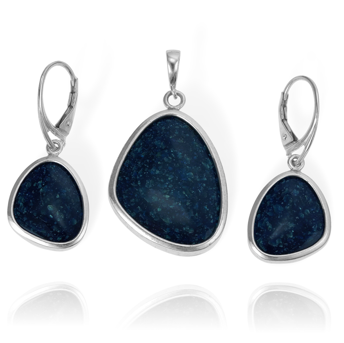 Piękny Srebrny Komplet z Awenturynem Szafirowym !