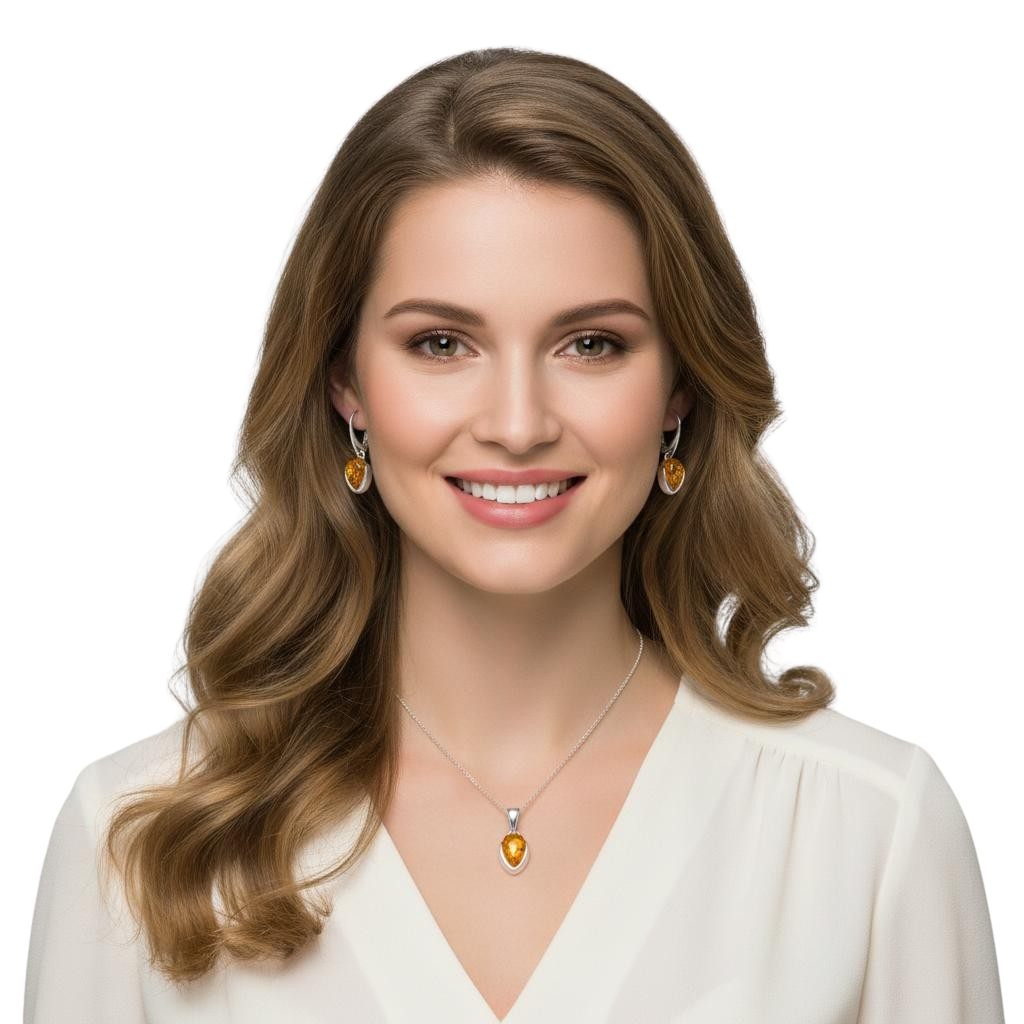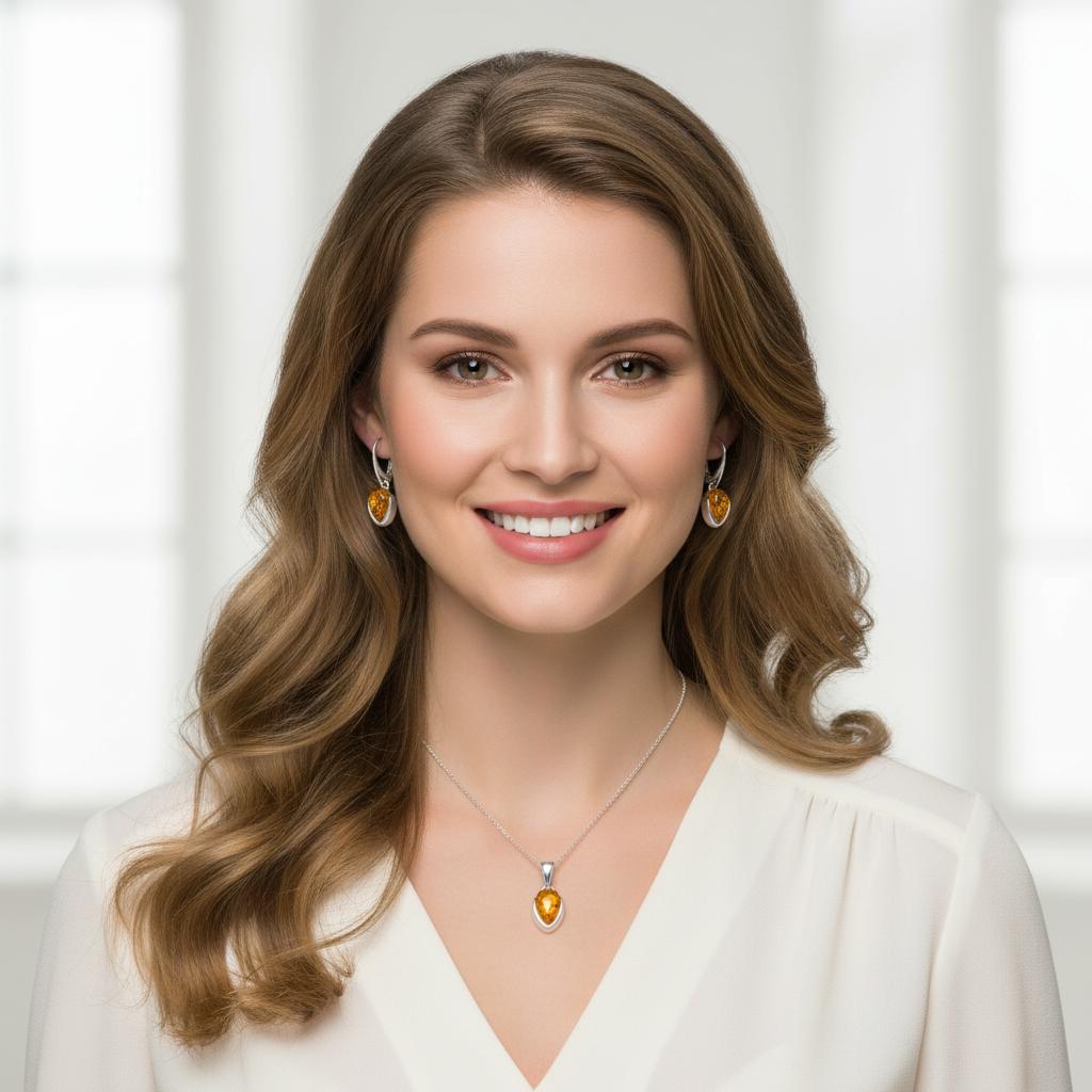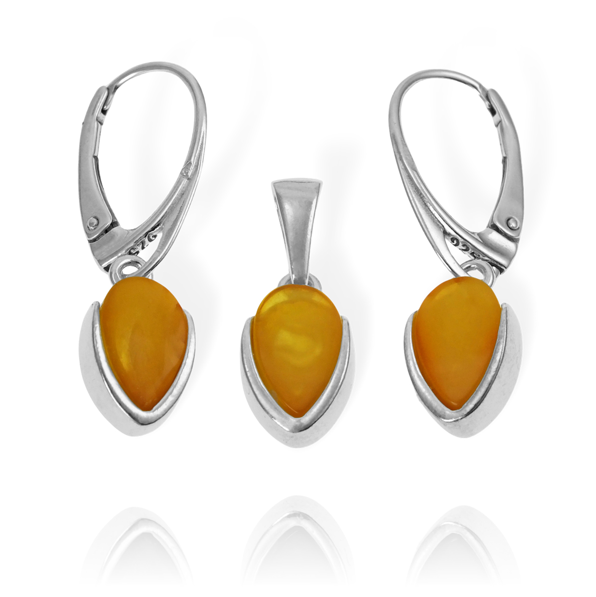 Piękny Srebrny Komplet z Bursztynami - pr. 925