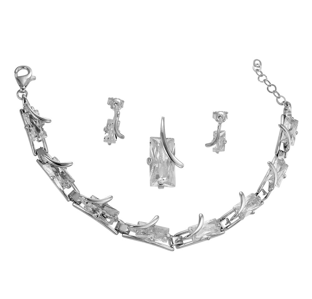 Piękny Srebrny Komplet z Cyrkonią - Fantazyjny Efektowny Wzór !!!
