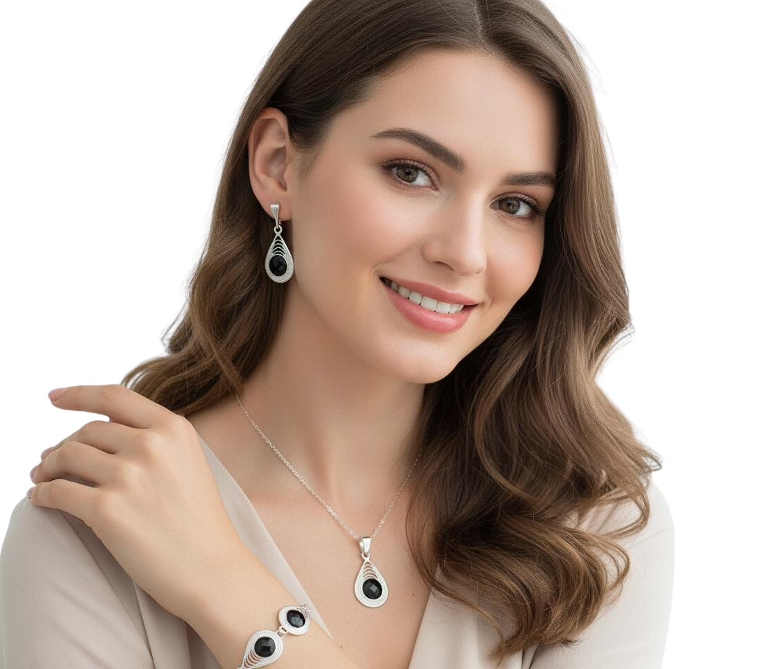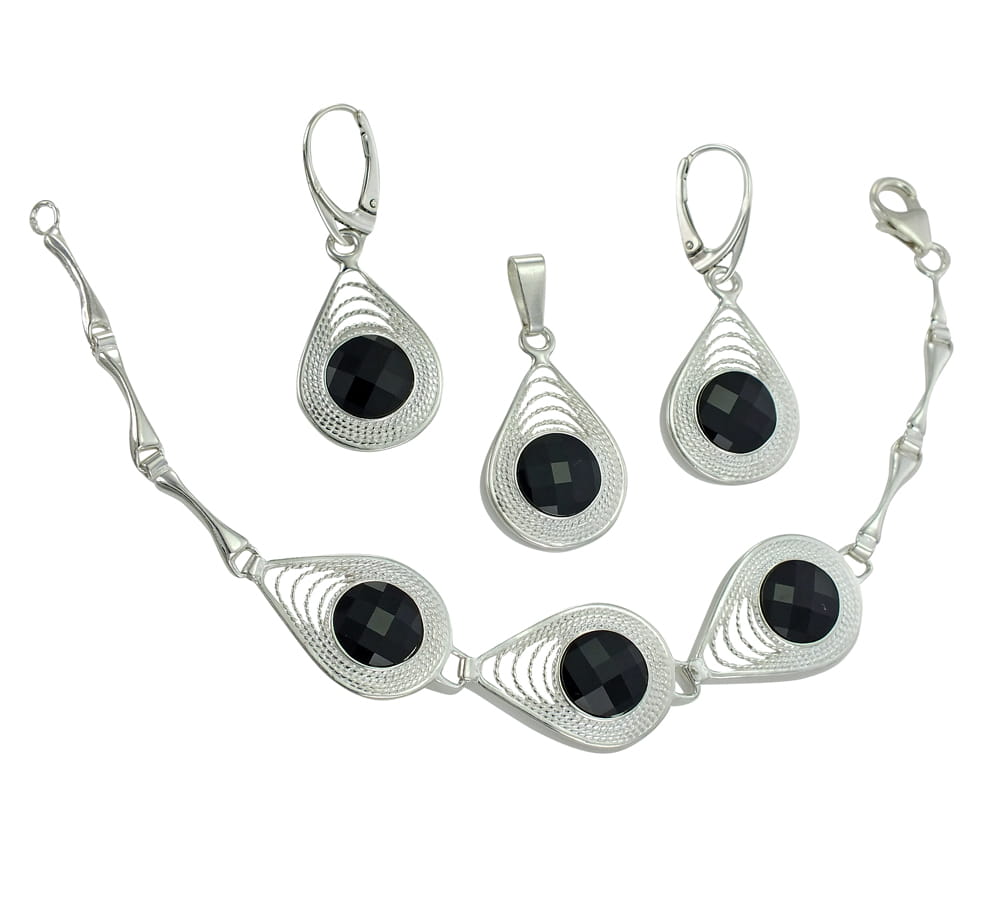 Piękny Srebrny Komplet z Czarnymi Cyrkoniami