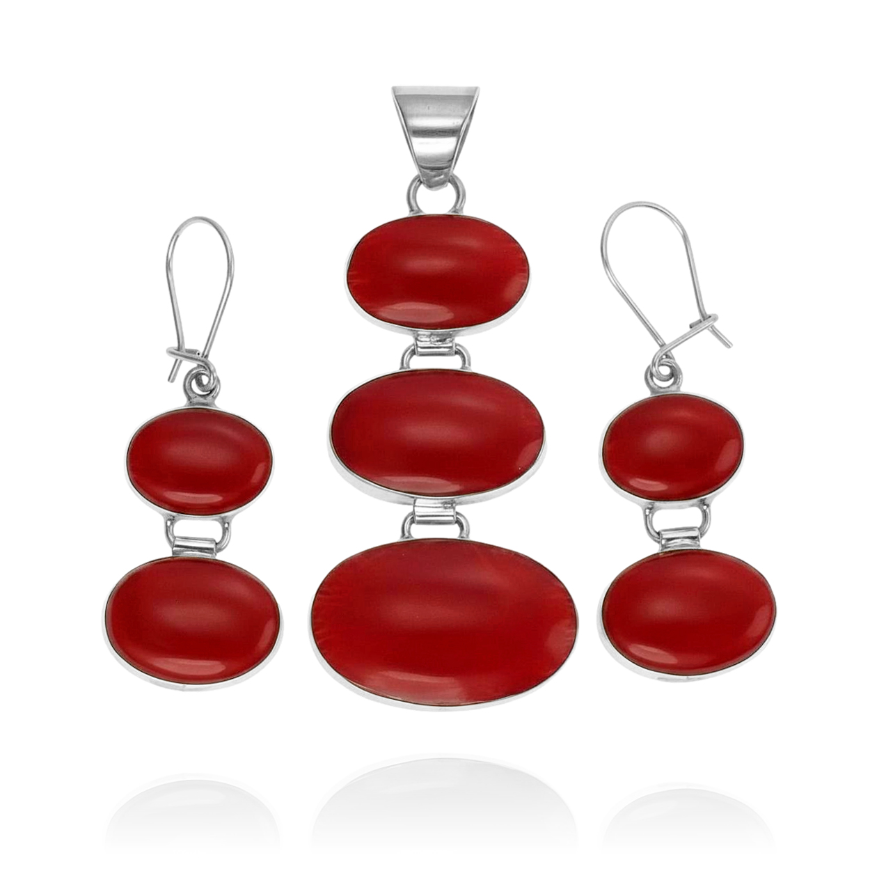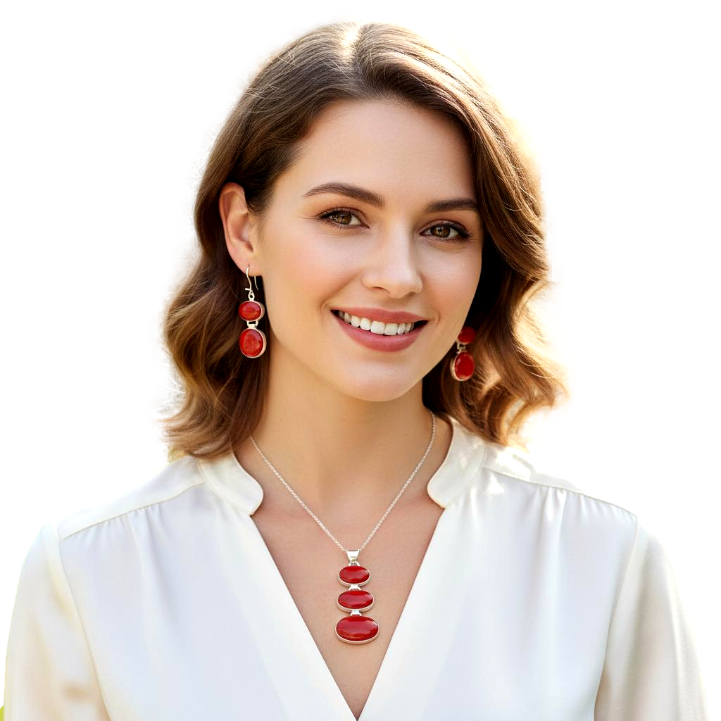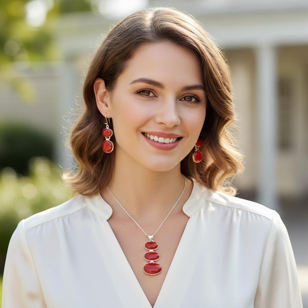 Piękny Srebrny Komplet z Czerwonym Koralowcem