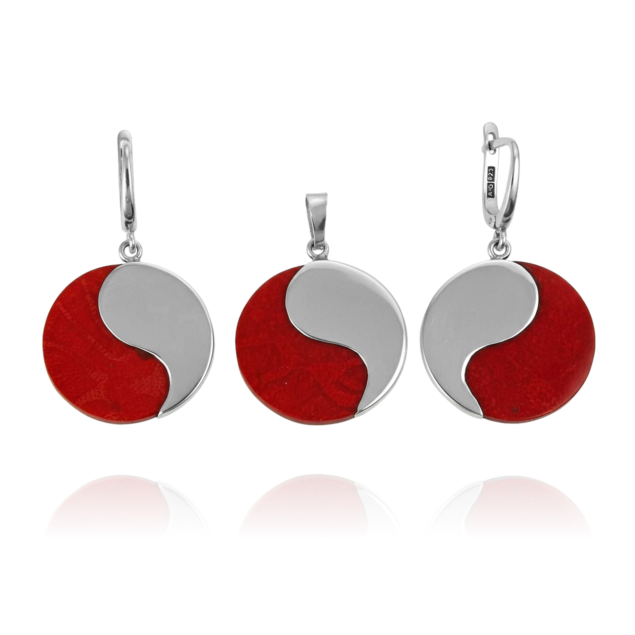 Piękny Srebrny Komplet z Koralowcem