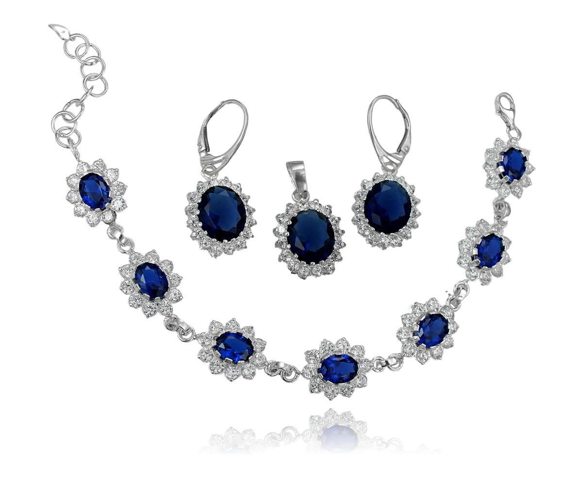 Piękny Srebrny Komplet z Niebieskimi Cyrkoniami