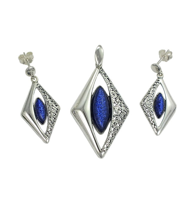 Piękny Srebrny Komplet z Nocą Kairu Jasny Granat Słoneczny Niebieski !!!