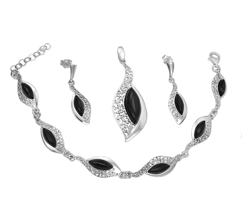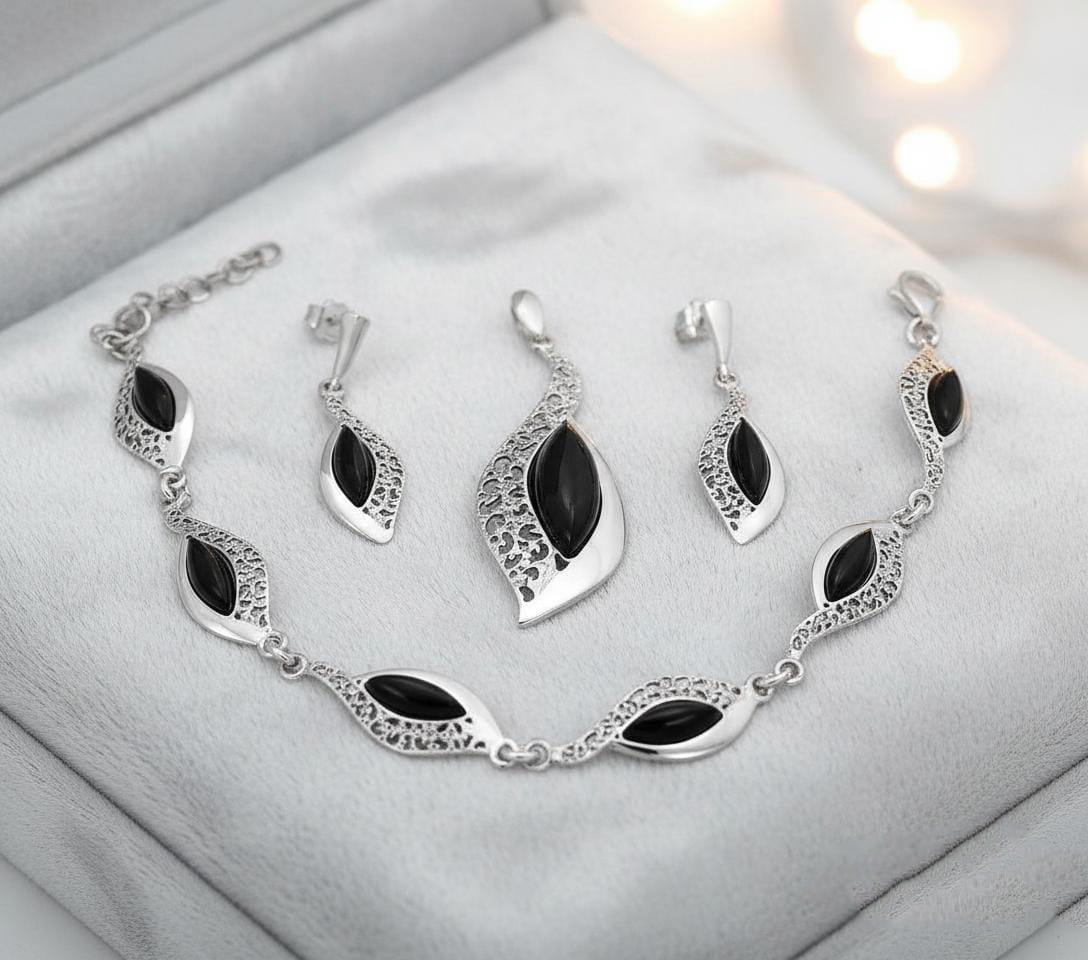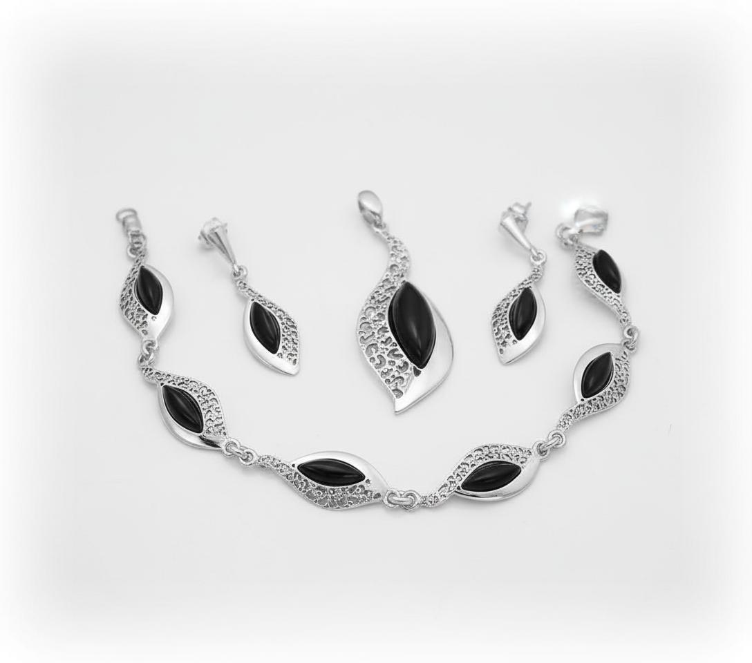 Piękny Srebrny Komplet z Onyksami !!! Jakość !!!