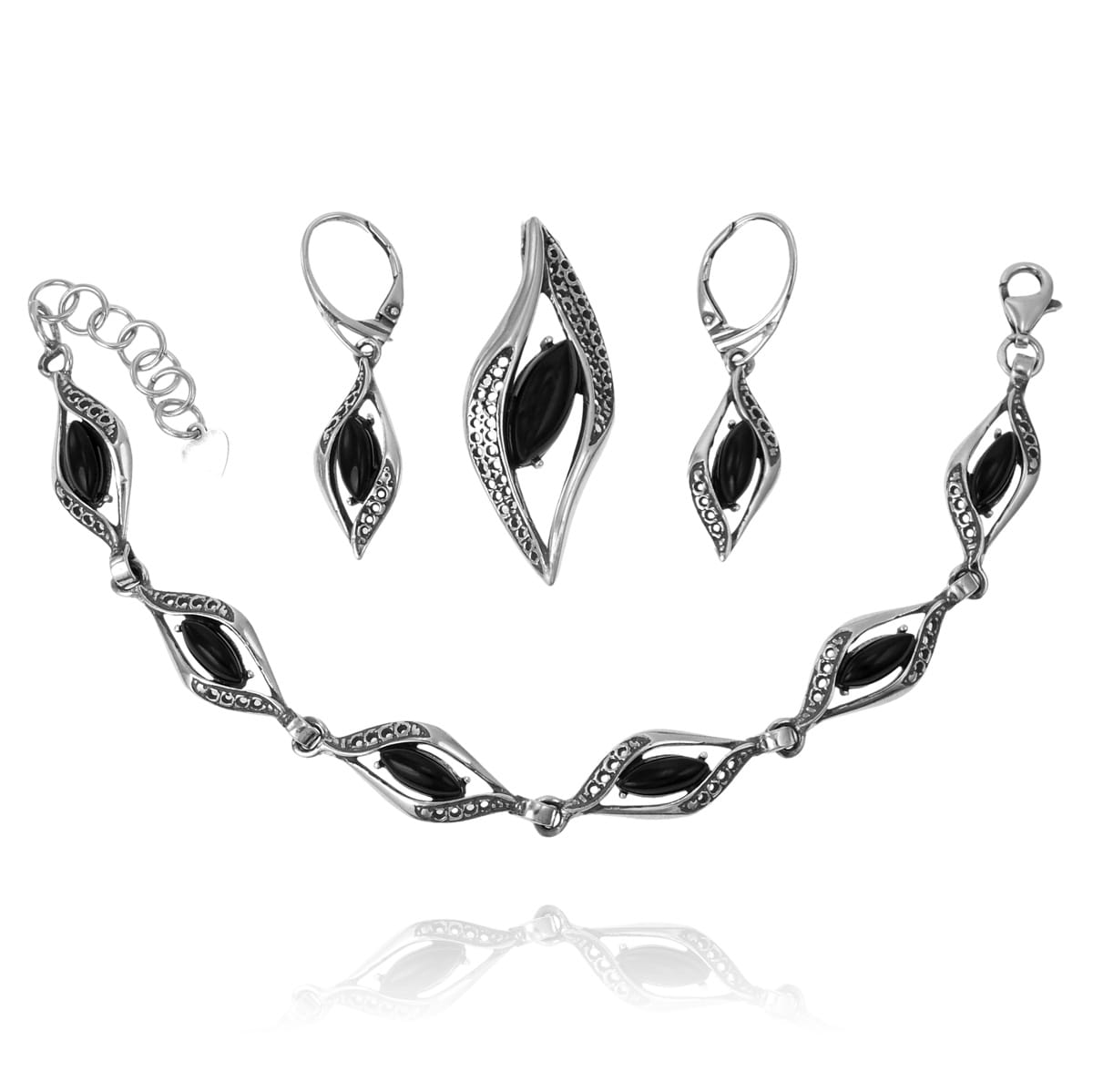 Piękny Srebrny Komplet z Onyksem !
