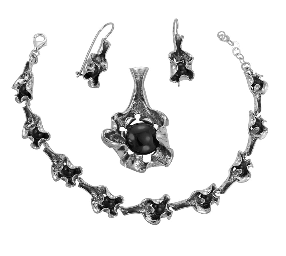 Piękny Srebrny Komplet z Onyksem - Fantazyjny Wzór !!!