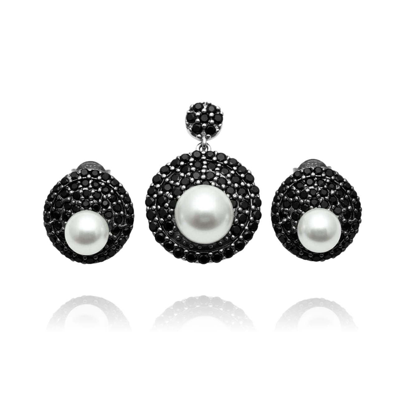 Piękny Srebrny Komplet z Perłami i Cyrkoniami !