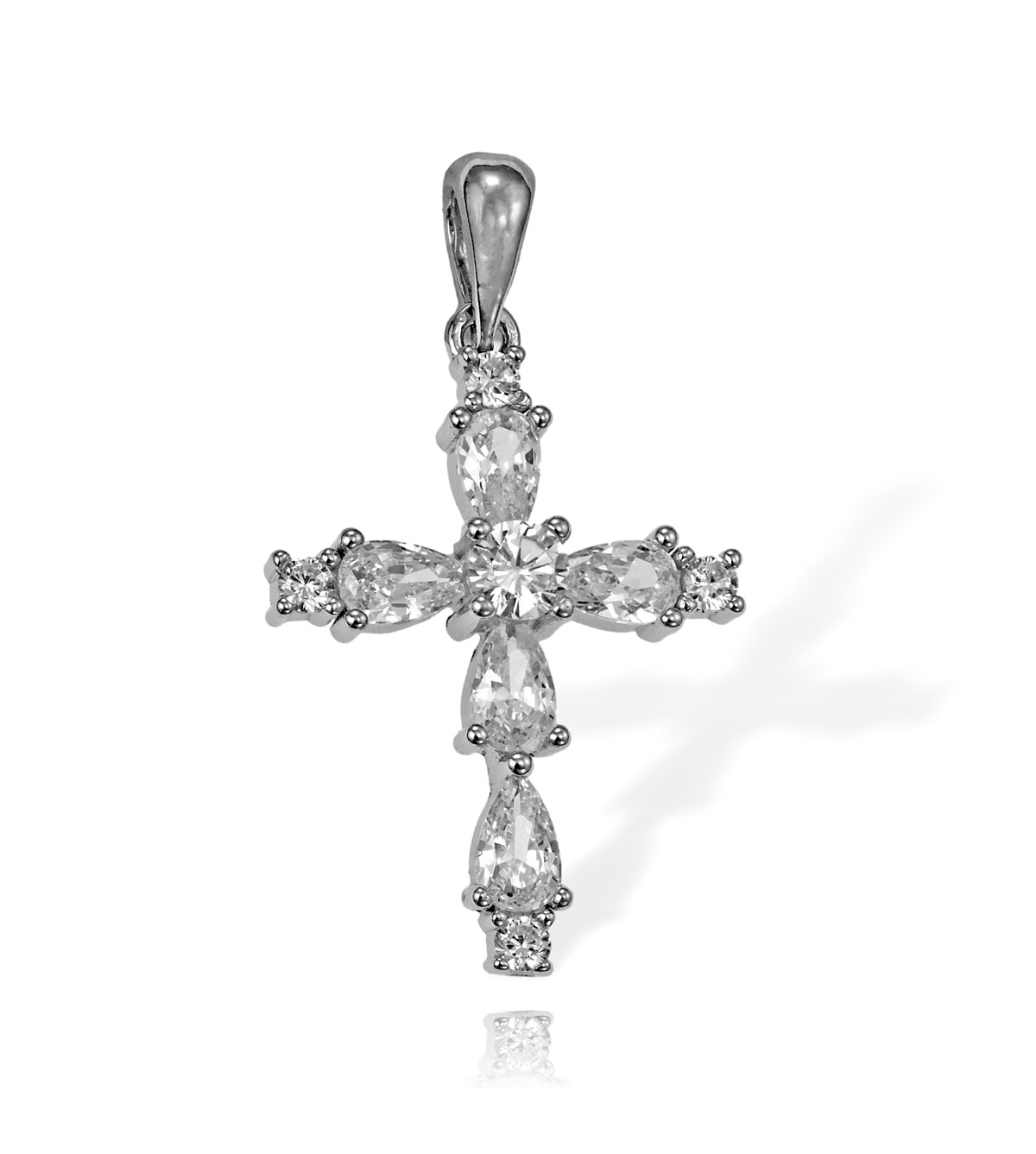 Piękny Srebrny Krzyż z Błyszczącymi Cyrkoniami