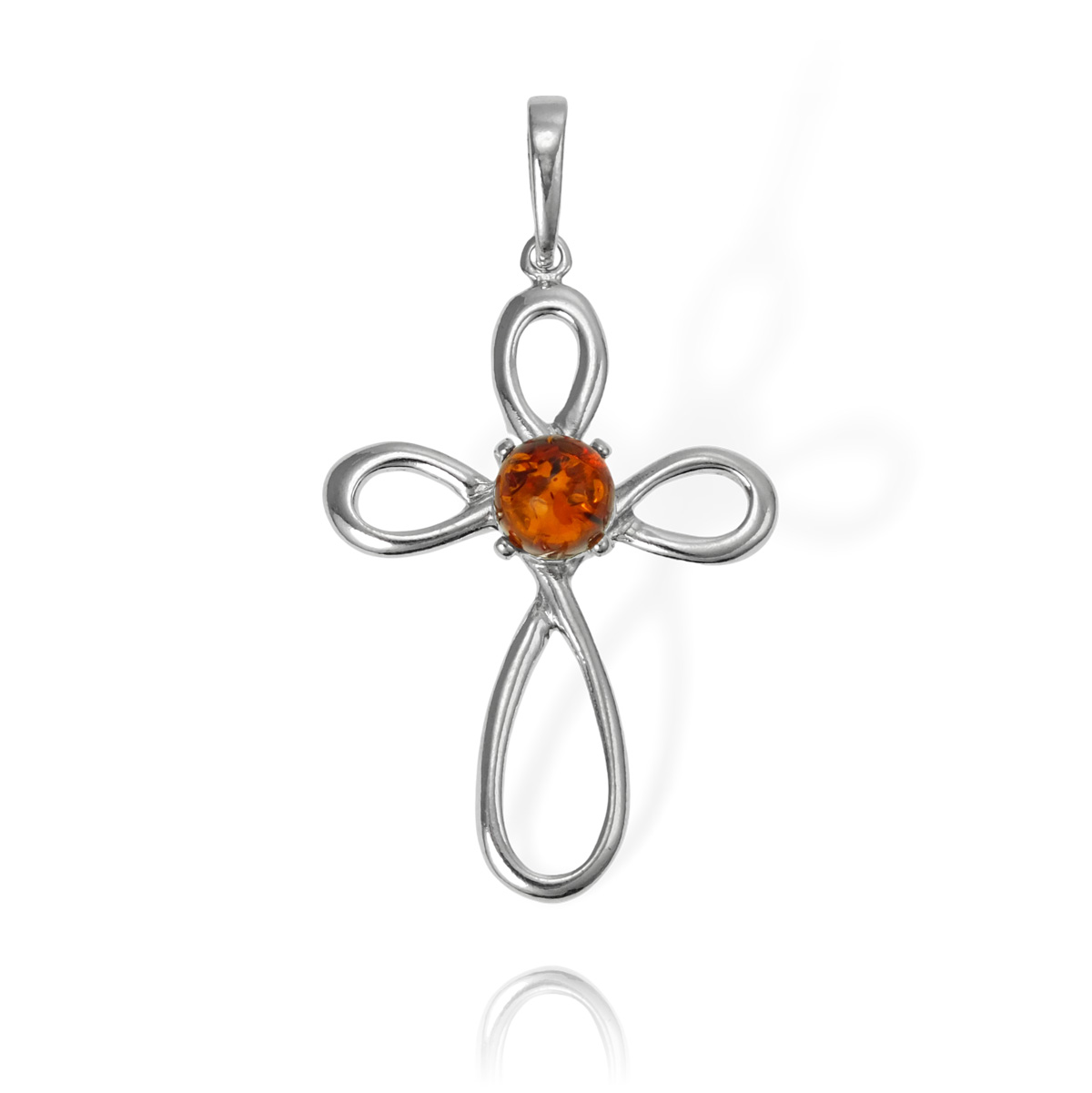 Piękny Srebrny Krzyż z Bursztynem - pr. 925
